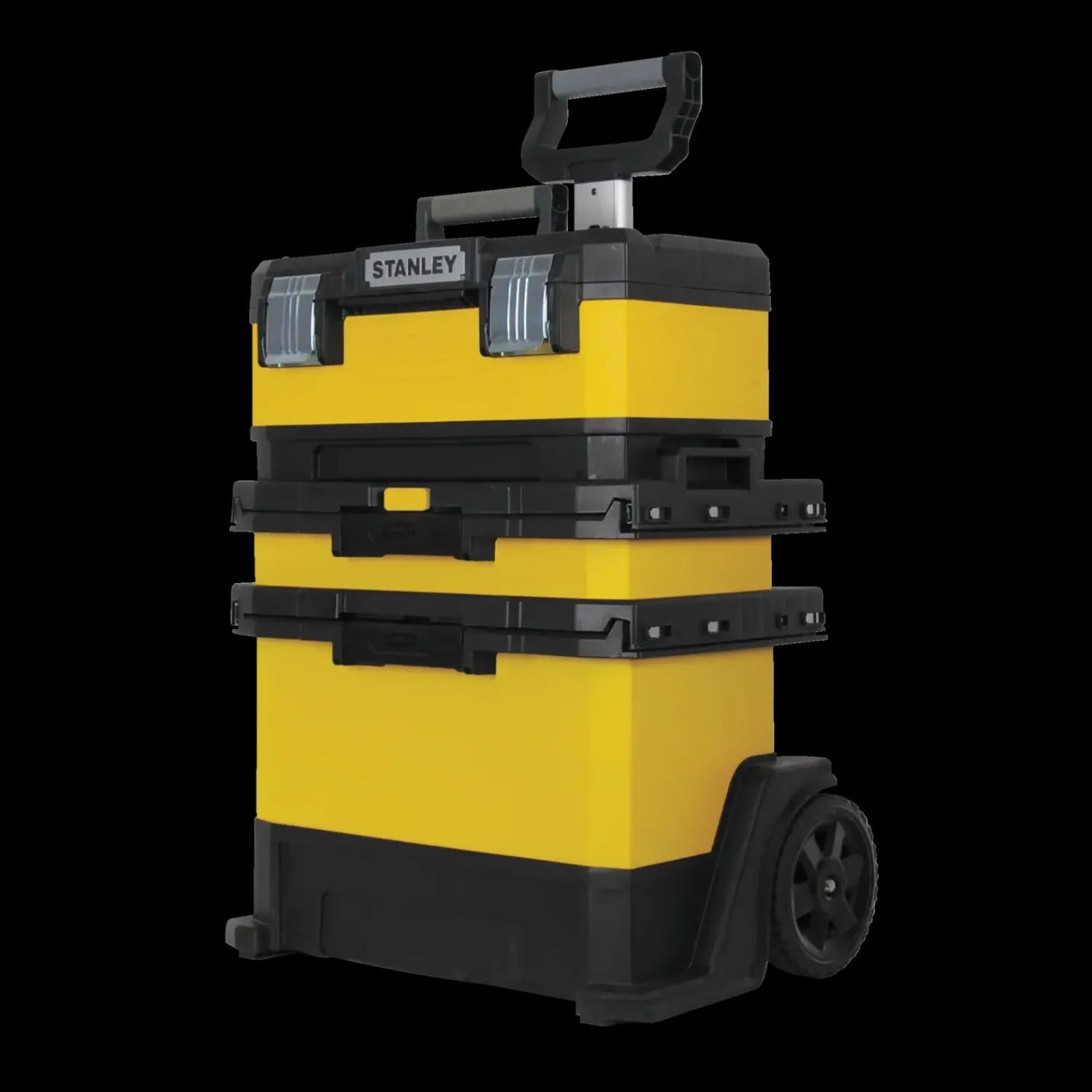 Stanley værkstedsvogn i metal og plastik med mange opbevaringsmuligheder.