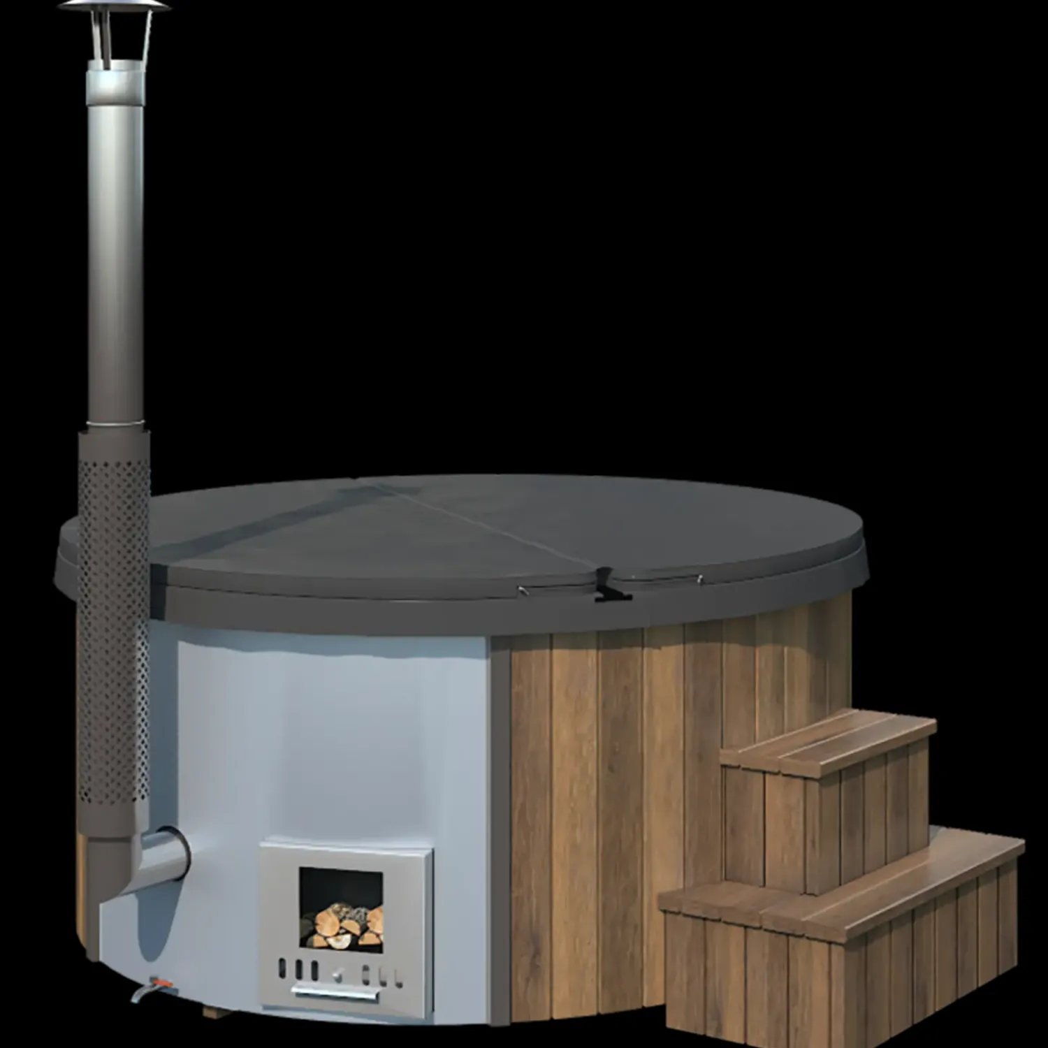 Derudover kommer badet med isolerende cover der er fremstillet i 7-10 cm imiteret læder, så varmen holdes inde. Ligeledes hjælper coveret til en nemmere rengøring samt vedligeholdelse, da blade og snavs ikke kommer i kontakt med vandet. Og med vildmarksbadets trappe i Thermowood får du nem adgang til badet.