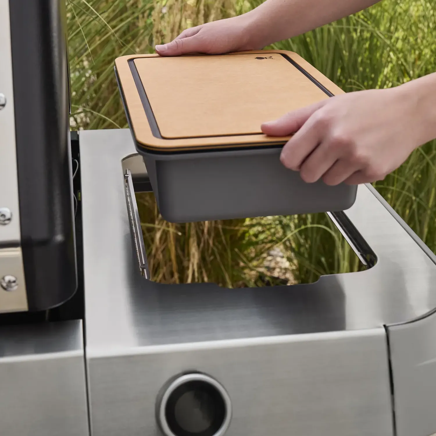 Boks og skærebræt sættes i sammen eller hver for sig i Weber Works-sidebordet.