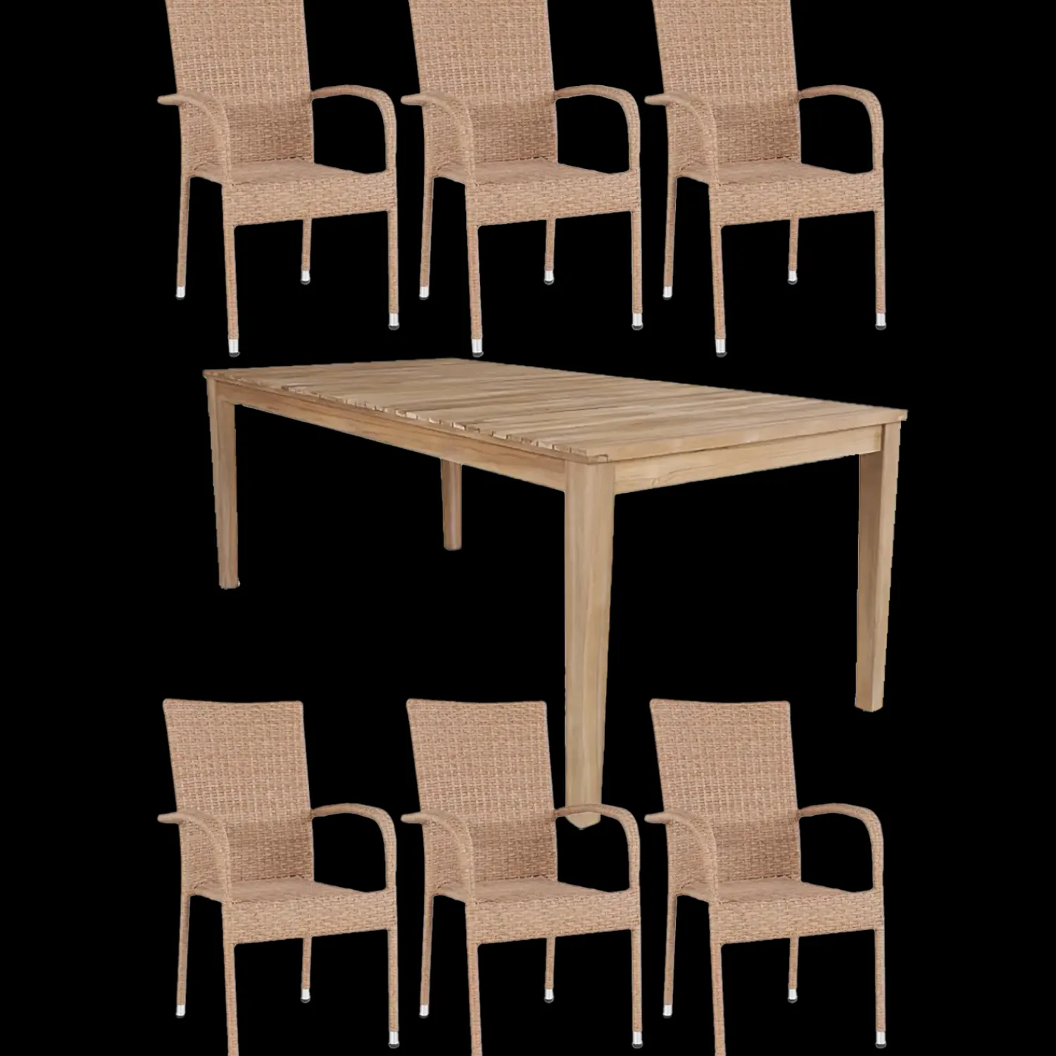 Havemøbelsæt med bord og 6 stole teak/natur