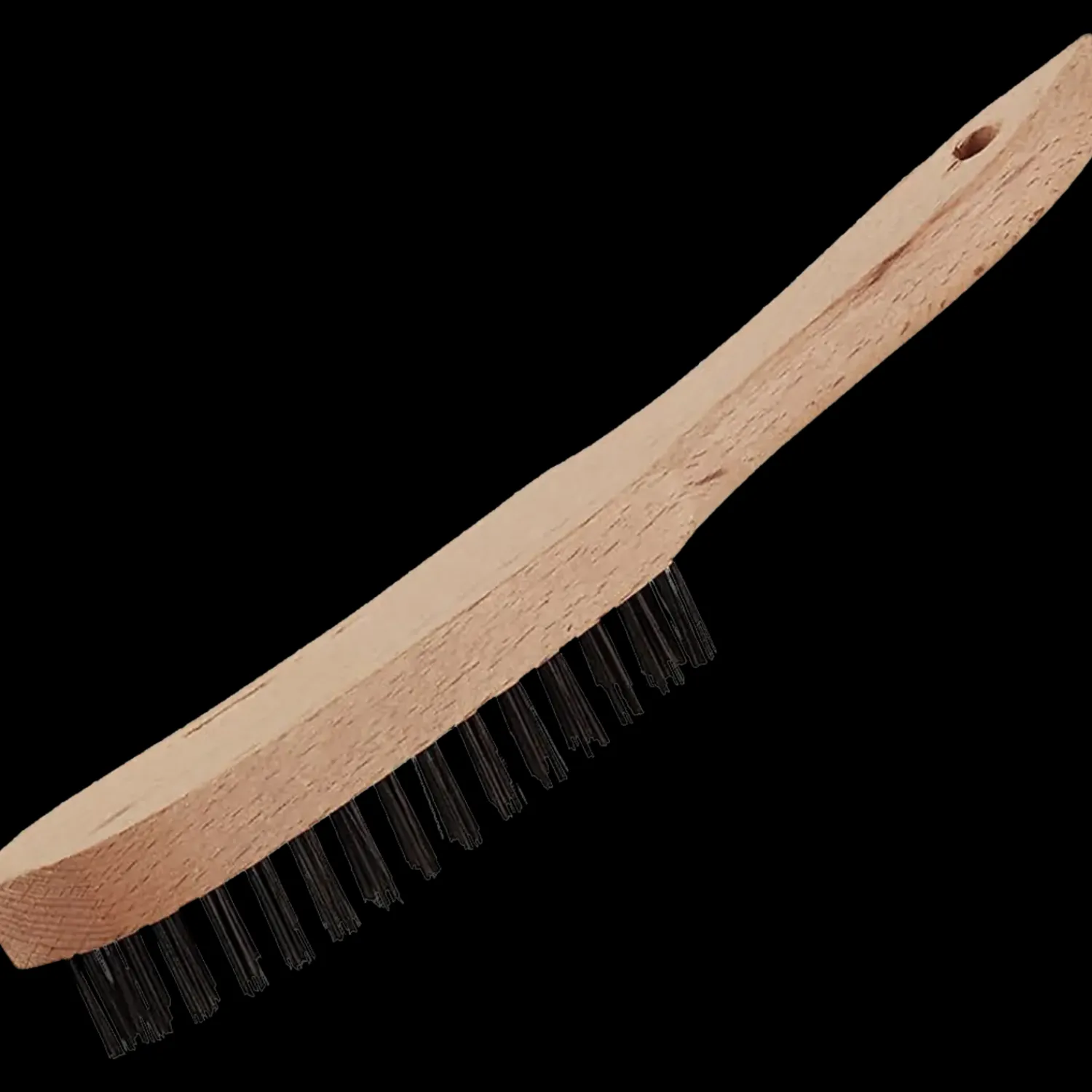 Stålbørste med ståltråd og træhåndtag.