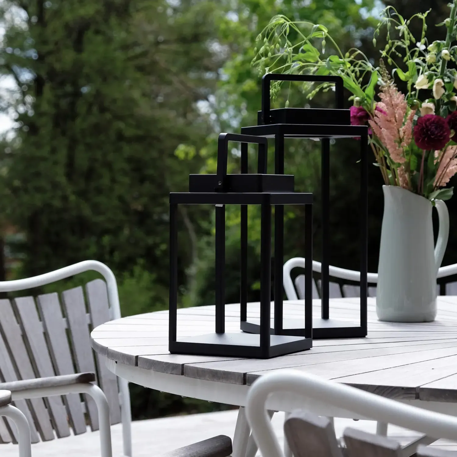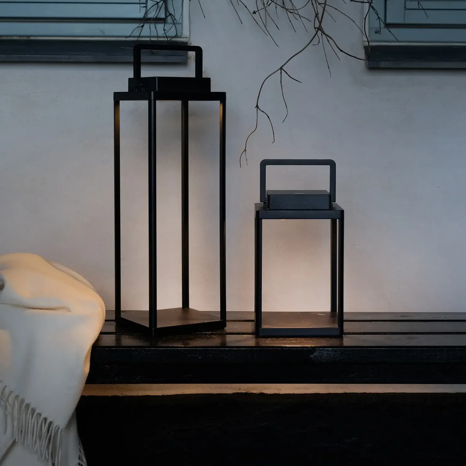Dyberg Larsen Lucca lanterne med et moderne udtryk – der vil pynte inde såvel som ude. Lanternen er fremstillet i aluminium og er med bærehank, samt indbygget LED i toppen. Larnterne har 3 lysstyrker, og kan anvendes ude og indenfor. Lanternen oplades via USB stik.