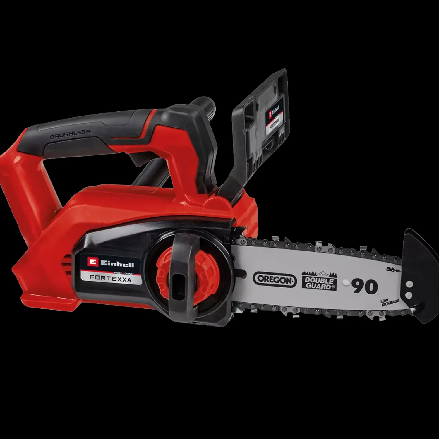 Kædesaven drives af en kulfri elmotor, er udstyret med OREGON kvalitetsværd og -kæde og har justerbar kædestramning og kædeskift uden brug af værktøj. Kædefangbolten, tilbageslagsbeskyttelsen med øjeblikkeligt virkende kædebremse og spidsbeskyttelsen garanterer sikkerheden, og den automatiske kædesmøring via den store oliepåfyldningsåbning sikrer plejen. Barkstødet består af metal, det ergonomiske håndtag er forsynet med softgrip.