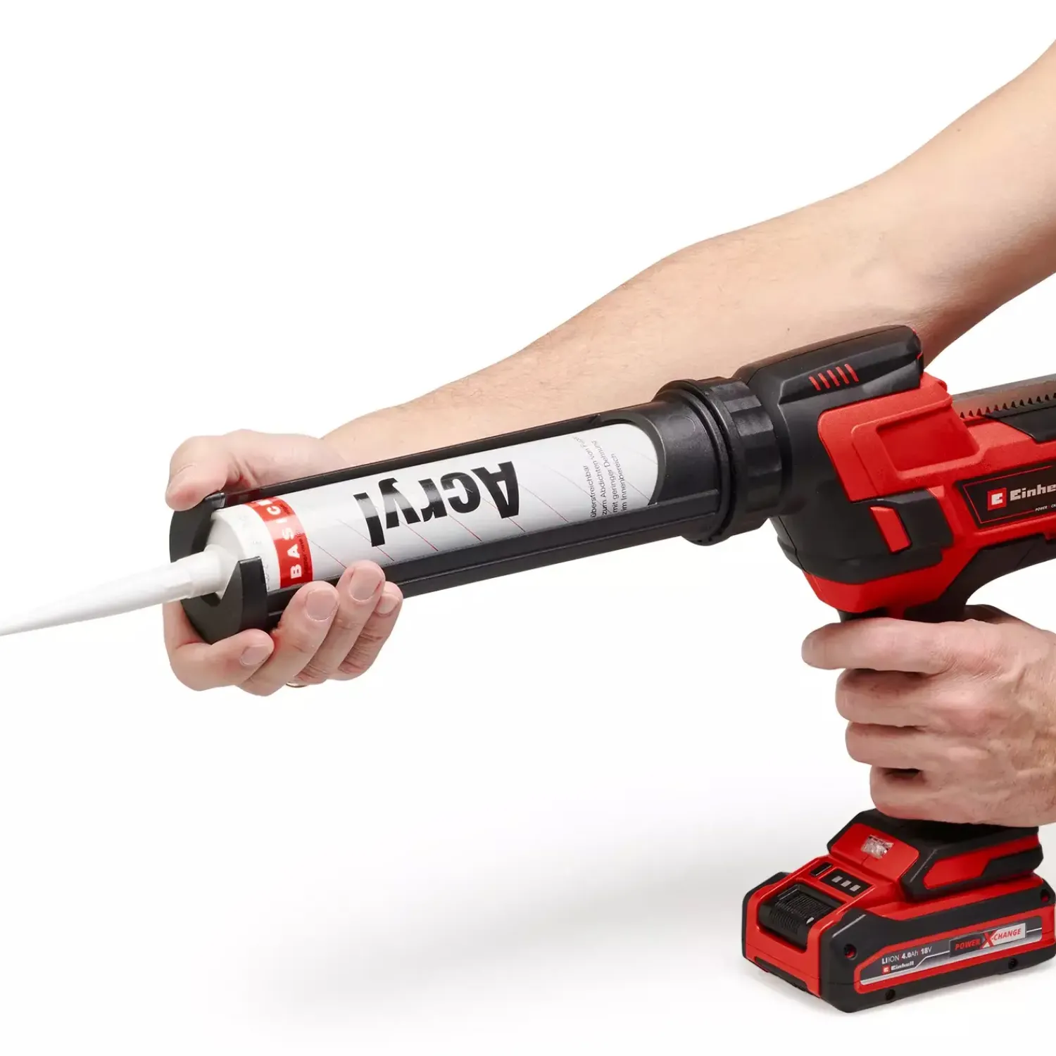 Indgår i Power X-Change familien, hvor batterierne passer til over 300 forskellige maskiner, fugepistolen anvender 1 x 18 Volt batteri på 2,0 Ah eller mere. Du får med Power X-Change serien en kontinuerlig trådløs drift takket være udskifteligt og højtydende batteri.