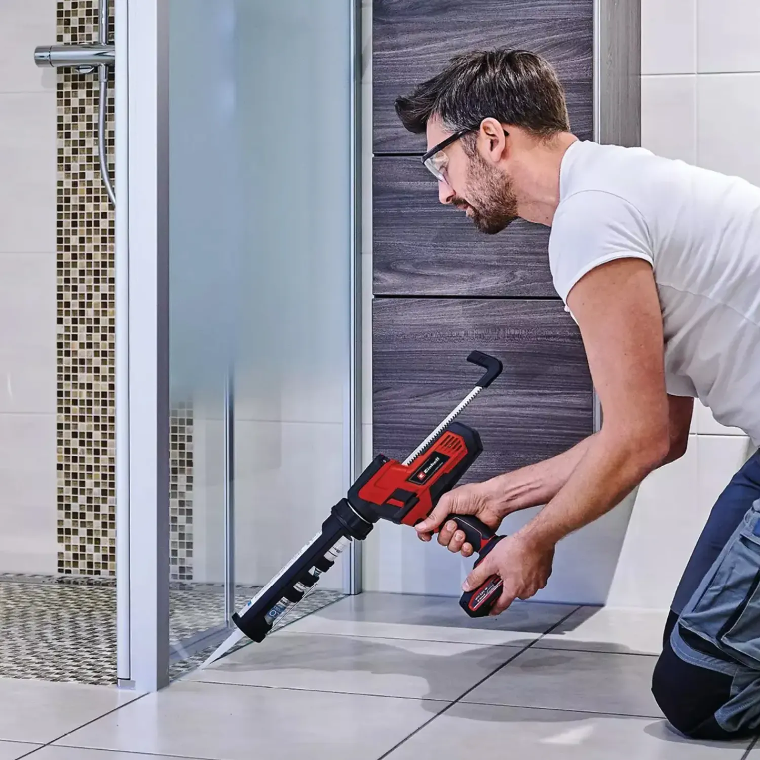 Fugepistolen har en maksimal udpresningskraft på op til 2.000 N, og udpresningshastigheden kan indstilles til de forskellige materialer og mængder ved hjælp af et indstillingshul og en trykafbryder.