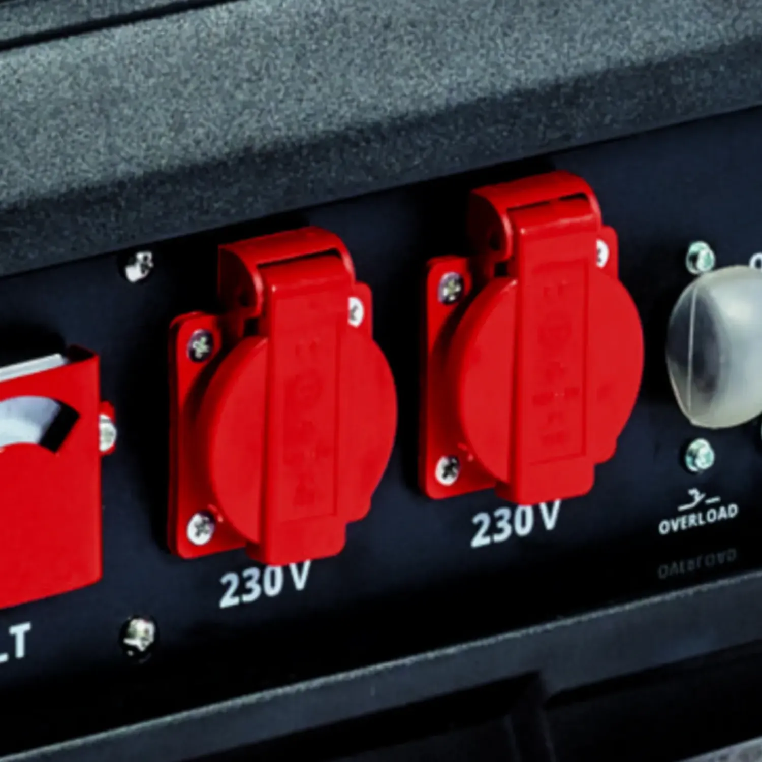 - To 230 V stikkontakter inkl. voltmeter til at vise spændingen