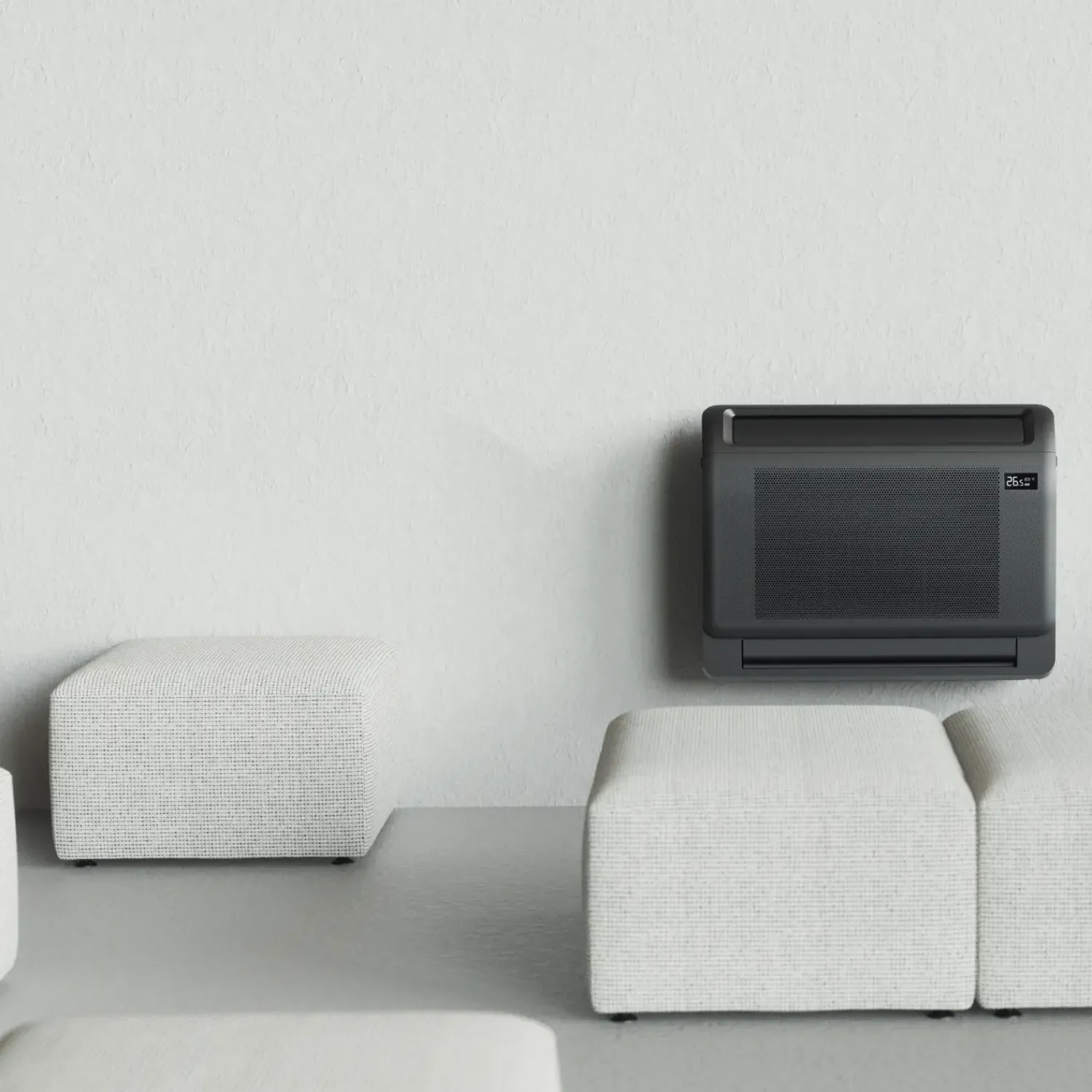 ELL Solid varmepumpe kombinerer effektivitet og design på bedste vis. Den udnytter varmen, der stiger op fra gulvet, og skaber et behageligt indeklima med minimal støj. Den elegante, minimalistiske og strømlinede form gør, at den passer ind i alle typer indretninger – fra helårsbolig og sommerhus til erhvervslokaler – uden at gå på kompromis med æstetikken.
