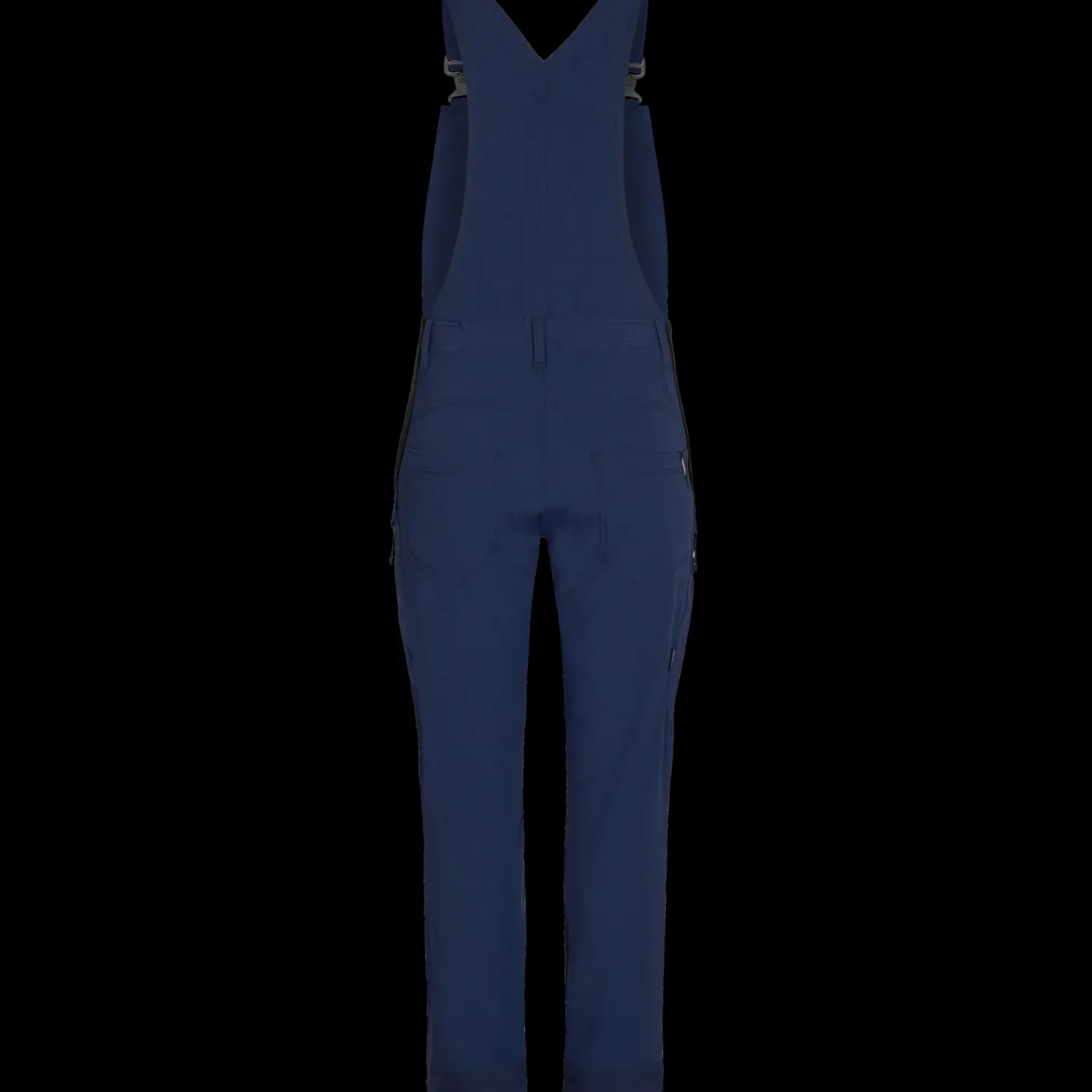 Funktionel overall med moderne pasform og mange praktiske detaljer. Optimal pasform med bl.a. ergonomisk formet knæparti. Metervaren er i en behagelig 4-vejs stræk hvor slidstyrken og åndbarheden er i top. Metervaren absorberer let sved og tørrer hurtigt så komforten bliver ekstra høj. Overallen har bred ryg i strækbart materiale. Regulerbare seler samt elastik i siderne for bedre pasform. Knapper for let og hurtig montering af hængelommer. D-ring til påsætning af f.eks. ID-kort. Smækken har skjult lynlåslomme bag på samt telefonlomme. To rummelige skrålommer foran. To baglommer. To lårlommer som lukkes med lynlås. I venstre side har lårlommen en ekstra telefonlomme. I højre side har lårlommen påmonteret tommestoklomme med ekstra inddelinger. Knæforstærkning/Knælomme i CORDURA med velcrolukning forneden samt 2 indstillingsmuligheder for knæpude. Forstærkning i bunden af buksebenene bagpå for ekstra slidstyrke. Overallen har en ekstra bred oplægning, der er beregnet til at øge længden på buksebenene, hvis der er brug for ekstra benlængde. En enkelt søm pilles op, og derefter er overallen med ekstra benlængde – og stadig sømmet op.