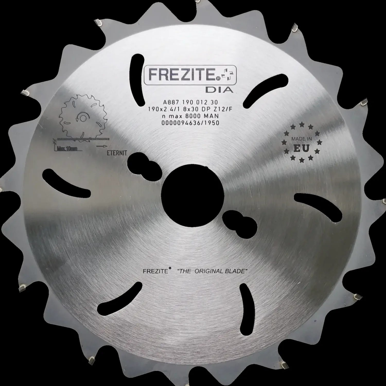 Denne Frezite diamantklinge på 190 mm. med montagehul på 30 mm. er specielt udviklet til opgaver i etanit. Du får her en fremragende savklinge med 12 trapezformede diamanttænder, hvilket giver et fantastik og rent snit på 2,4 mm. Frezite diamantklingen her er designet til at minimere støvgener for optimalt arbejdsmiljø Frezite og er ideel til eksempelvis dyksave, håndholdte rundsave samt stationnære rundsave