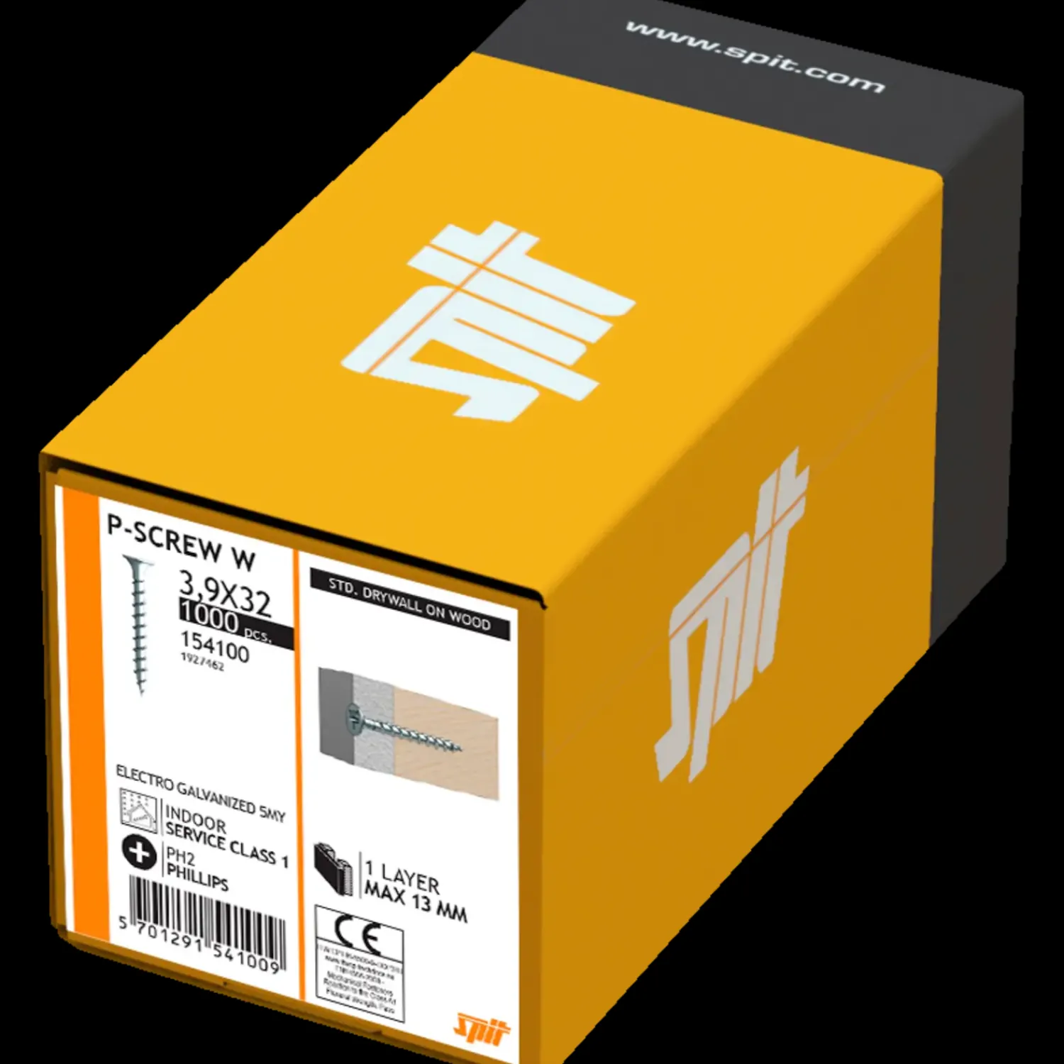 Gipsskruer^Spit P-Screw W gipsskrue t/træ 3,9×32 mm TH PH2 elforzink. 1000 stk.