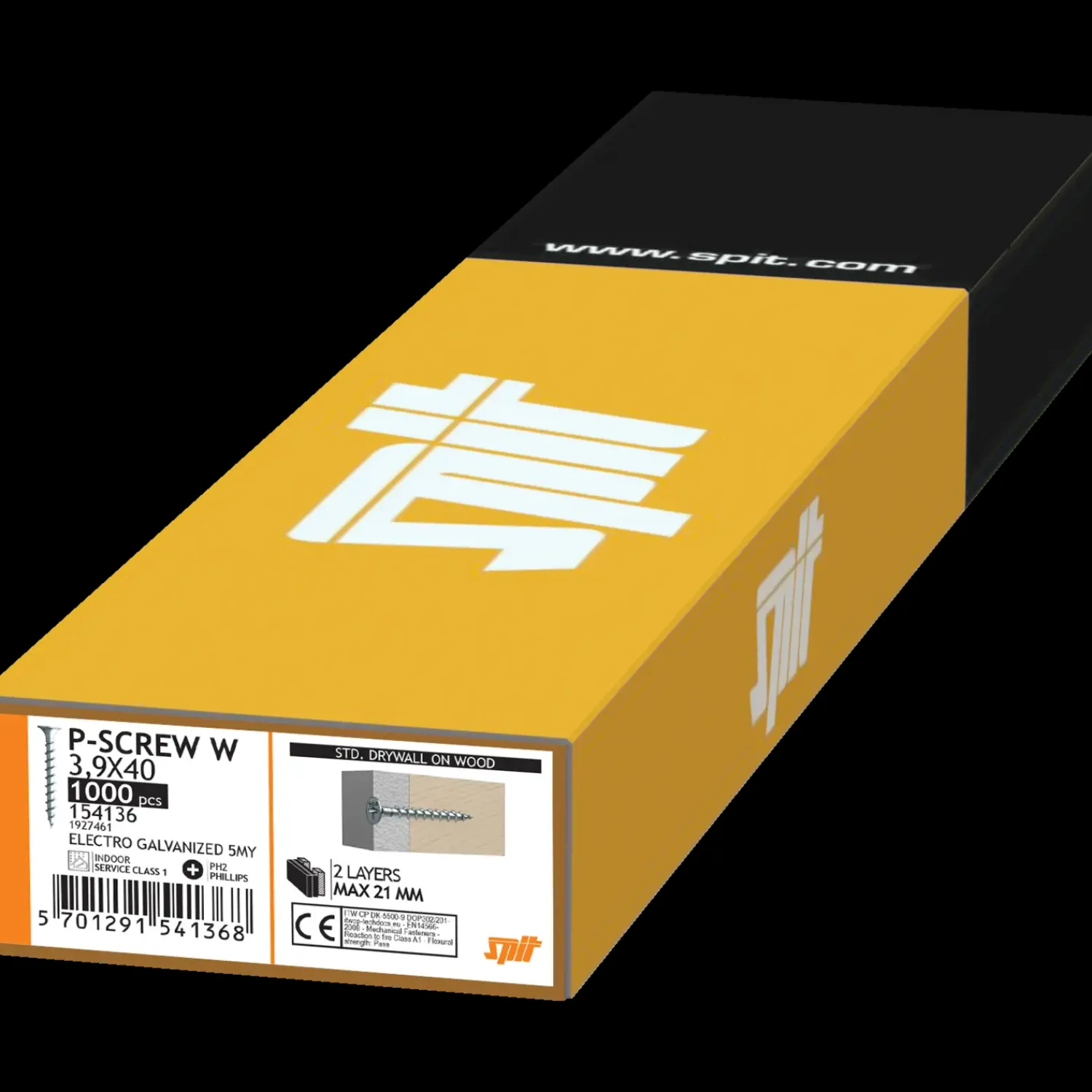 Spit P-Screw W gipspladeskrue til montering af gipsplader på træ.Trompethovedet undersænker skruen i gipspladen og tr…