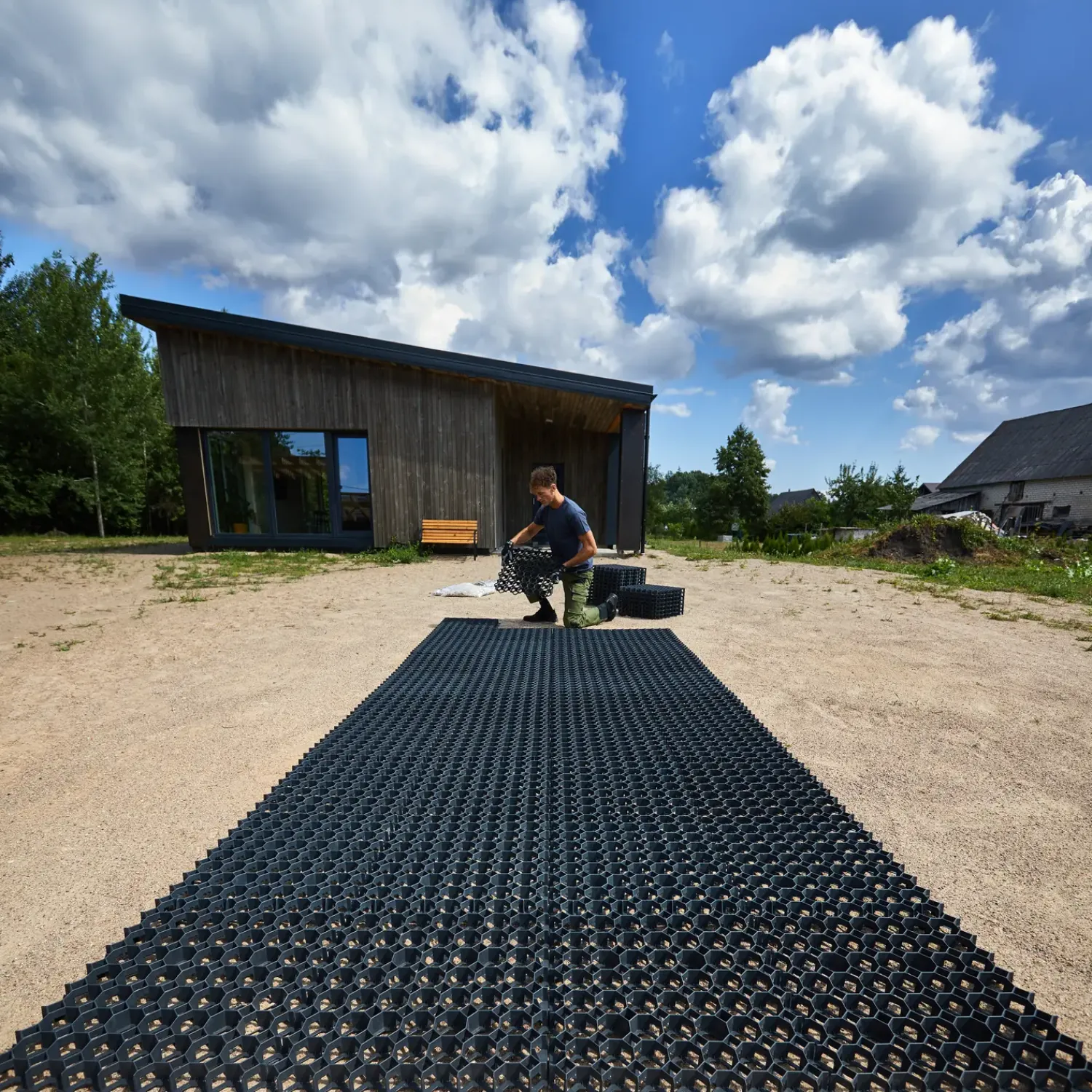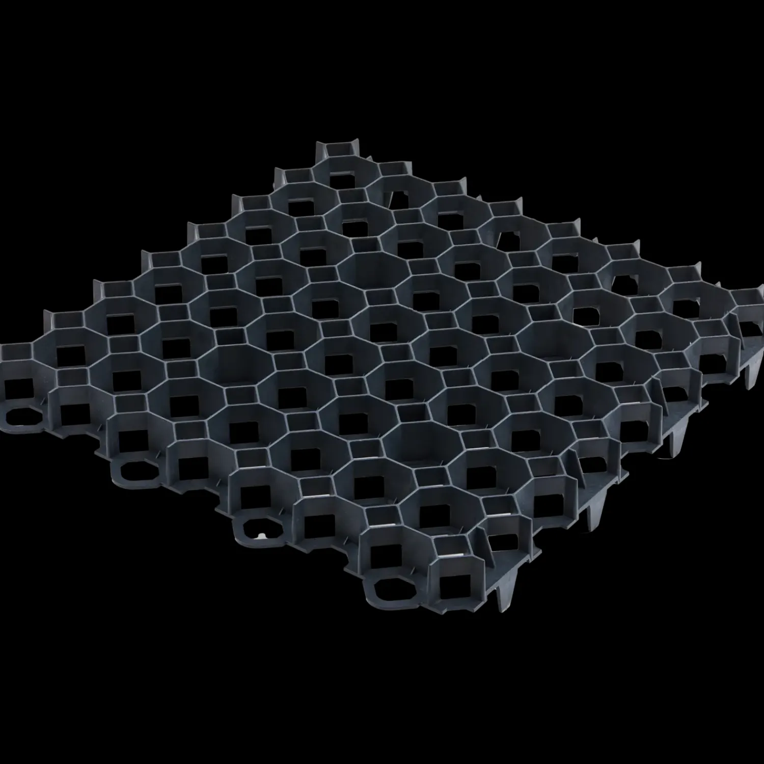 Holdbar græsarmering i med huller til dræn af regnvand. Styrker underlaget, modvirker erosion, så arealerne forbliver pæne. Pladerne sættes nemt op mod hinanden, og piggene ned i jorden holder dem på plads. 100% genanvendt plast (PE/PP). Dækningsareal 0,2237 m2/stk. Vægtbelastning op til 160 t/m2. 980 gram. 47x47x3.6 cm.
