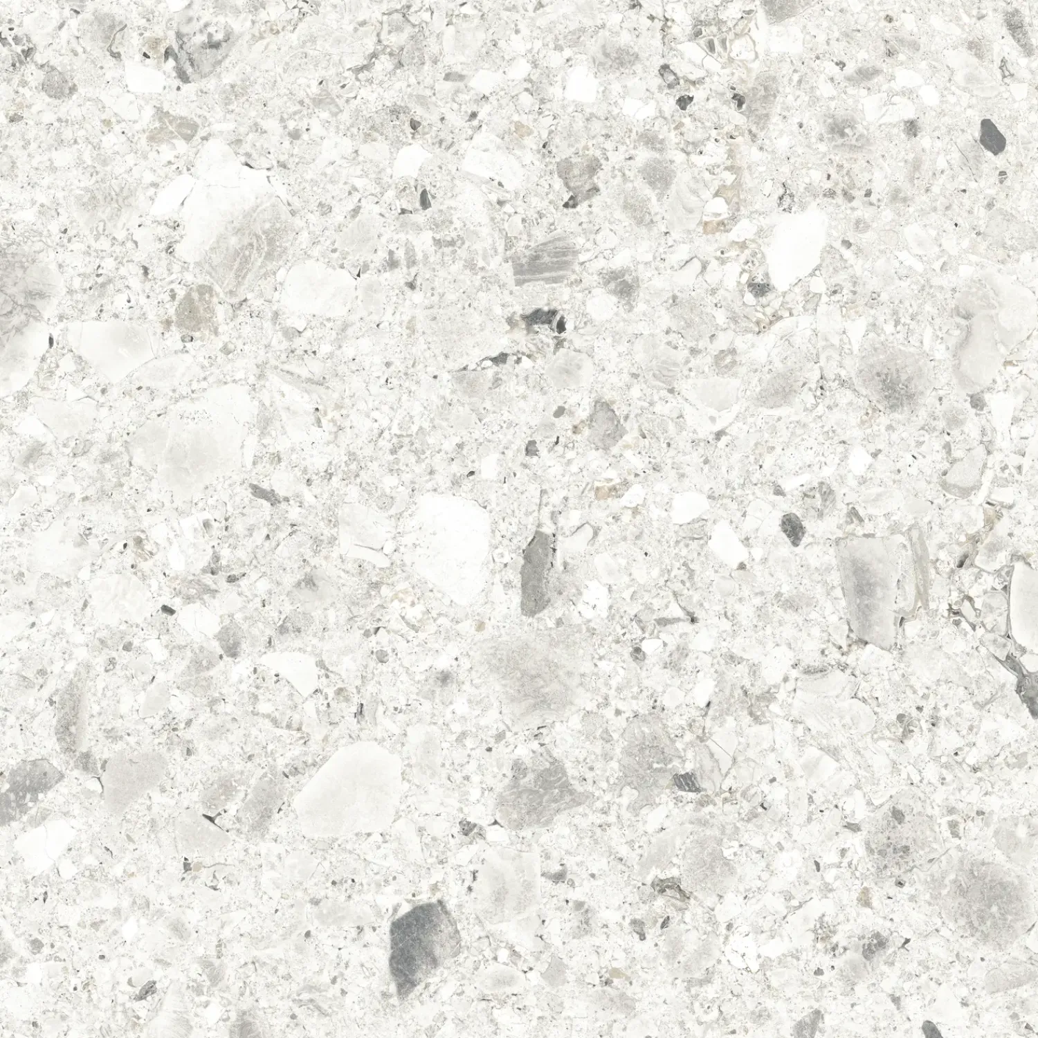Ceppo di Gré er en grå stenart som indeholder en masse mindre sten. Ceppo di Gré skaber, med sine mange små sten og grå nuancer, et abstrakt mønster på gulvet.