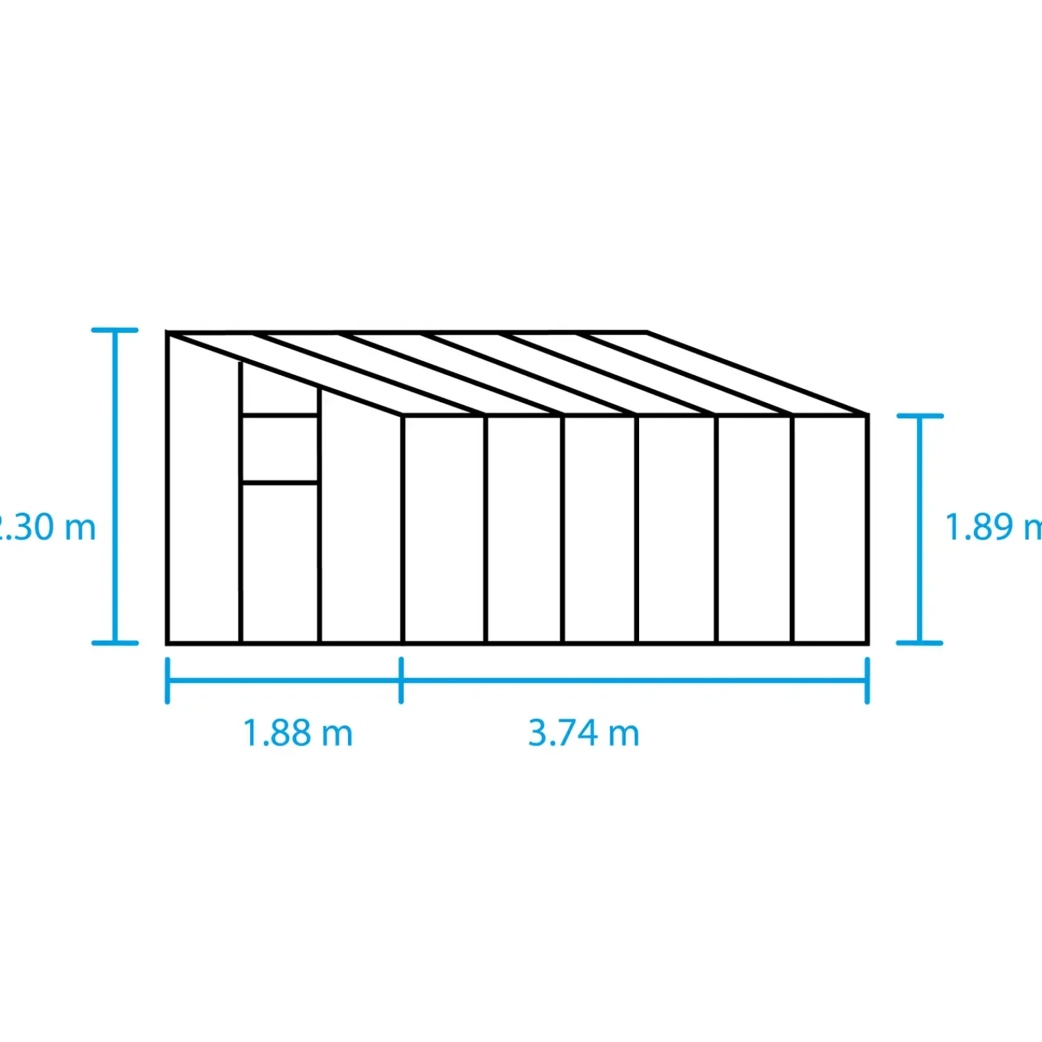 Halls Qube lean-to 612 er med en letløbende dobbeltskydedør der sikrer en nem adgang. Drivhuset kommer med sorte profiler og 3 mm hærdet glas i siderne og 10 mm polycarbonat plader i taget.