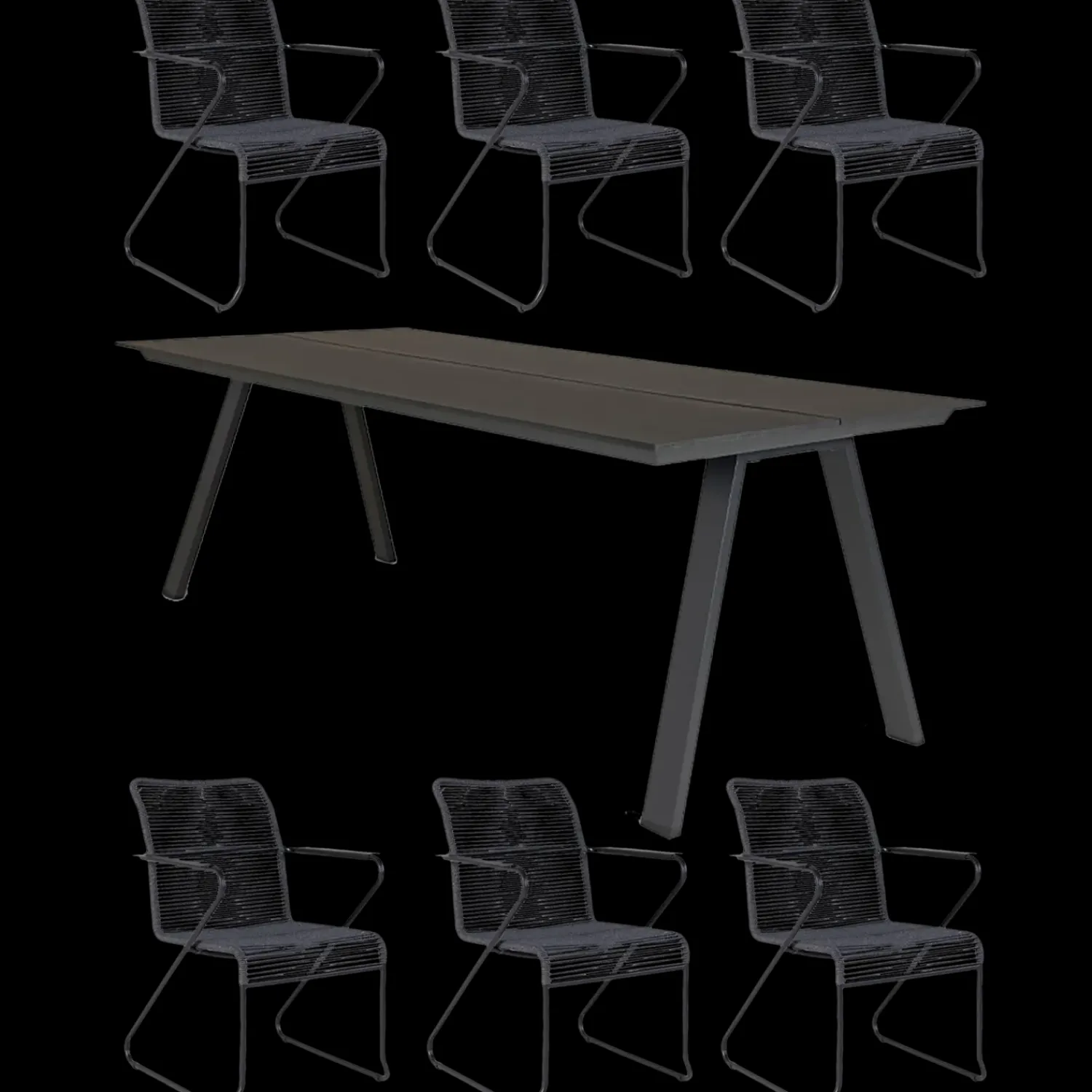 6 x Korfu havestole med antracitgrå rebflet og sort pulverlakeret stålstel.