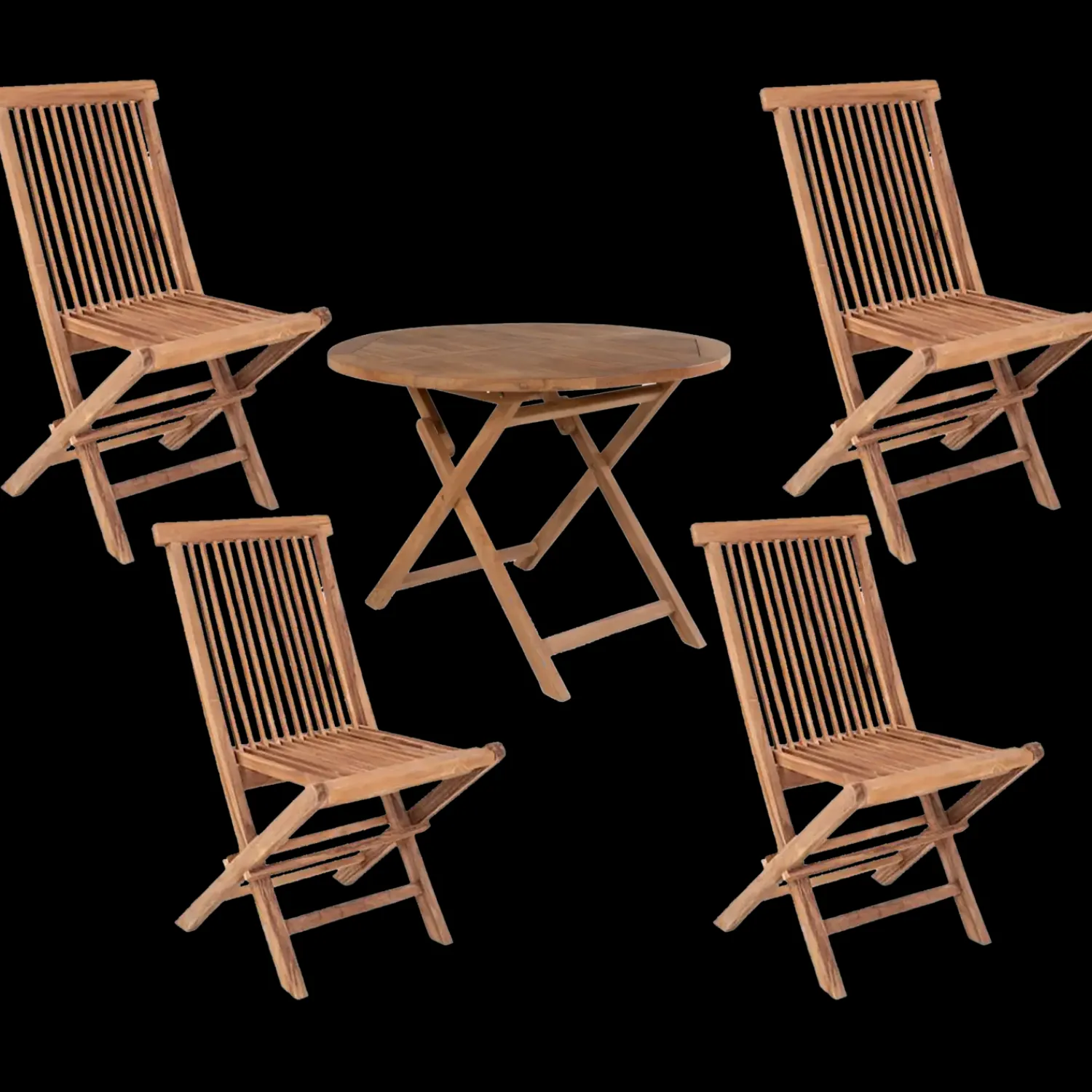4 x Bali klapstole fremstillet i FLEGT-certificeret teaktræ med naturligt look.