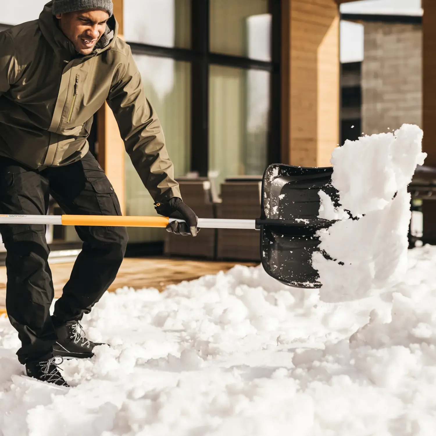 Stort Dhåndtag med skridsikker SoftGrip™ belægning har en størrelse, der passer til brug med vinterhandsker.