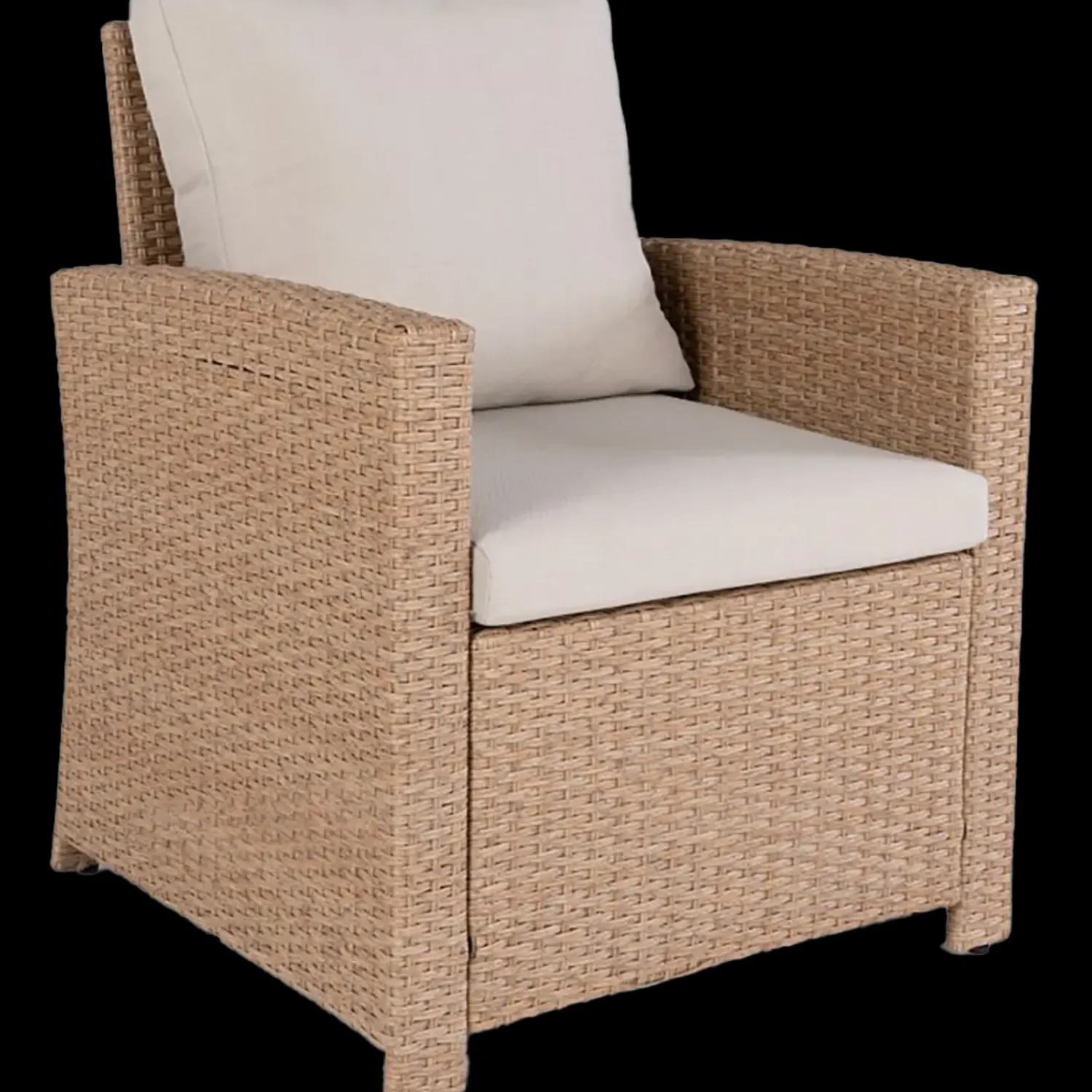 Havestol naturfarvet PE-flet og ekstra høj ryg. Materiale er vejrbestandig og kræver meget lidt vedligholdelse.Leveres incl. hynder.Ryghøjde 49 cm fra sæde til top af ryglæn..