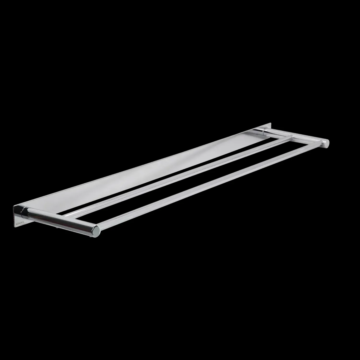 Håndklædestang dobbelt, krom. Kan monteres både med og uden bagpladen. Bagpladen er velegnet til at skjule tidligere huller.