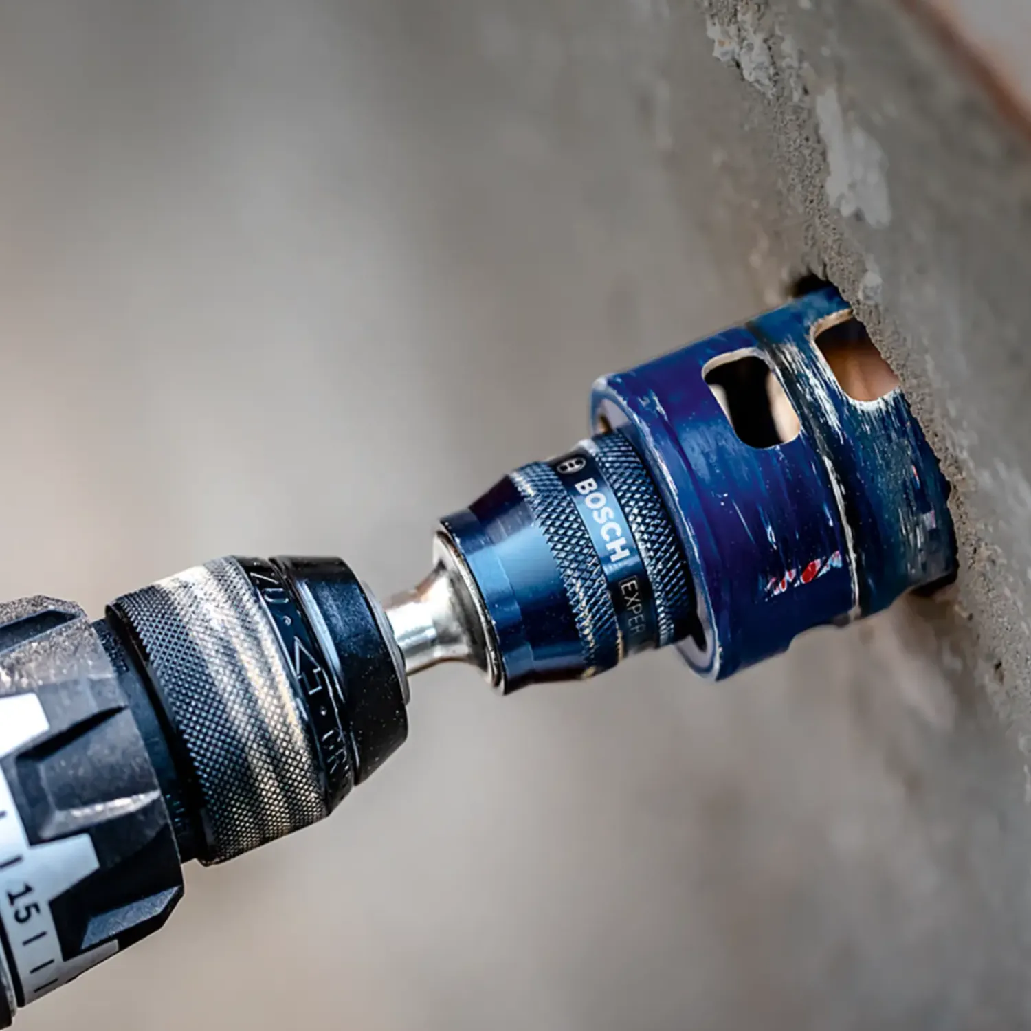En hulsav er et godt værktøj, men det kan være vanskeligt at montere dem korrekt på boremaskinen. Og det koster både tid og penge. Med EXPERT Power Change Plus kan du skifte hulsav på få sekunder takket være den smarte holder fra Bosch.