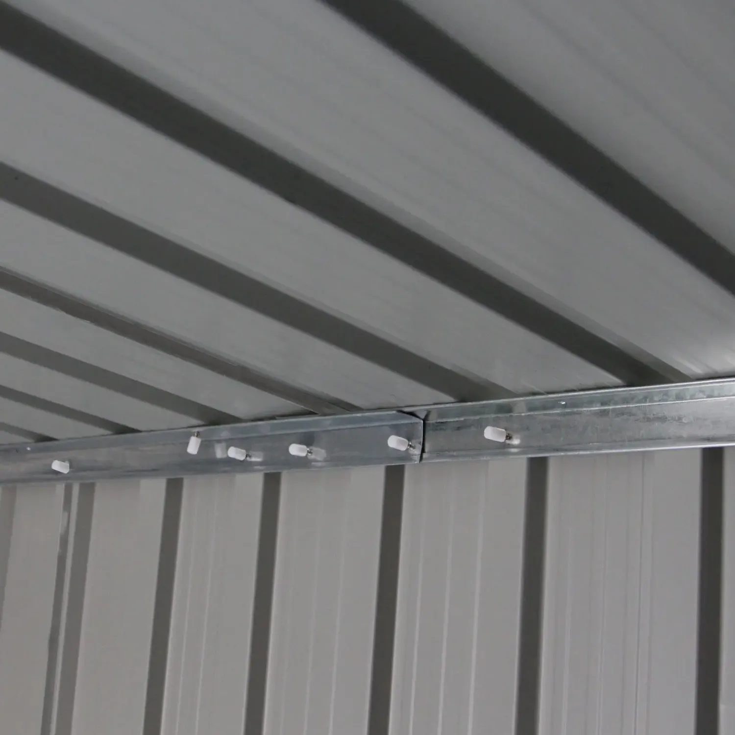 Praktisk redskabsrum. Redskabsrummet har en stor dobbelt skydedør så du ubesværet kan får plæneklipperen eller trillebøren ind. Stålskuret leveres usamlet, og er fremstillet i el-gavaniseret grålakeret stålplader.