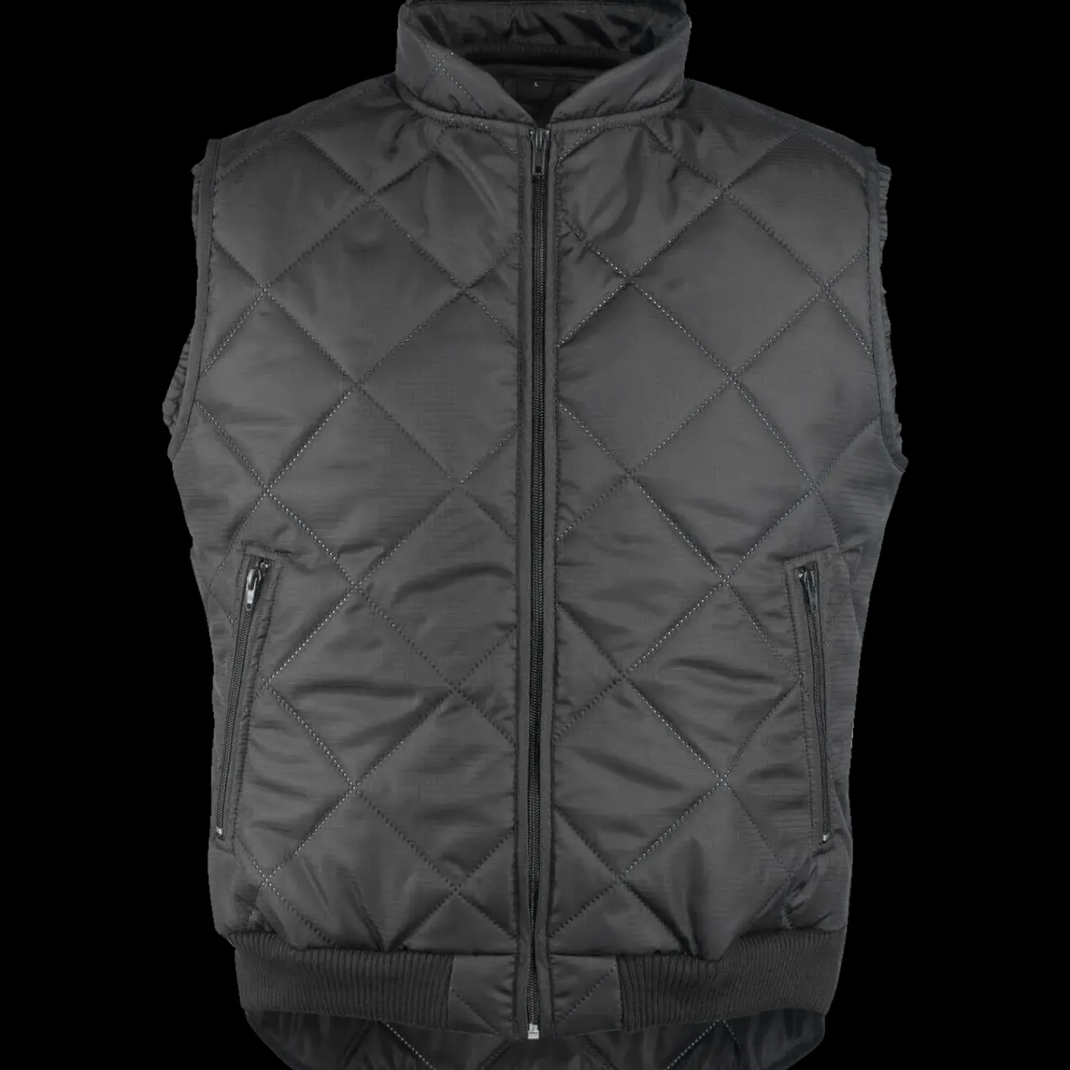 Ultralydssvejset polyester med polyestervat som isolering. Let buende krave med indvendig rib, som slutter tæt til i halsen og holder kulden ude. Lynlås er gennemgående. Forlommer med lynlås. Ryg er forlænget. Elastik i ærmegab. Rib i nedre kant.