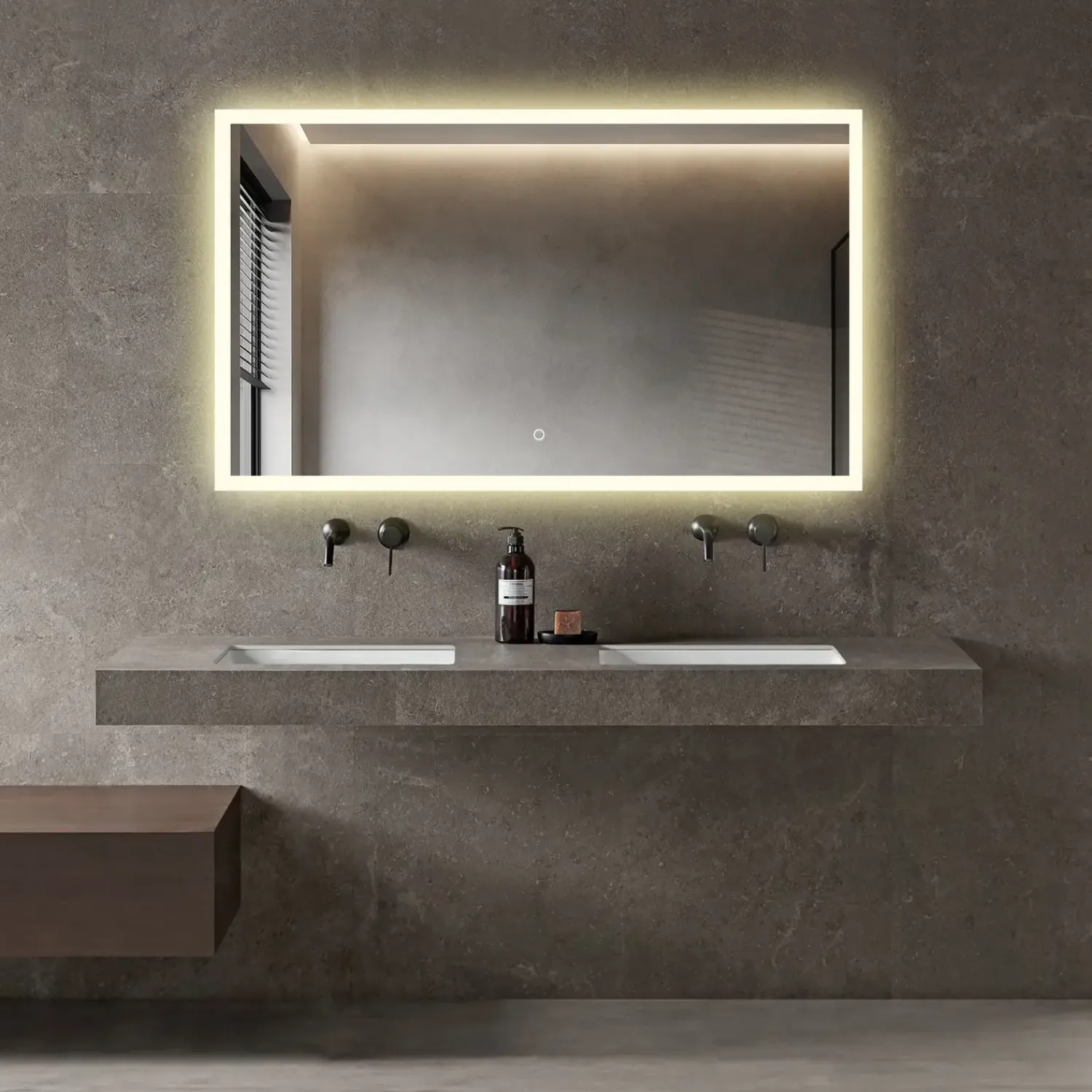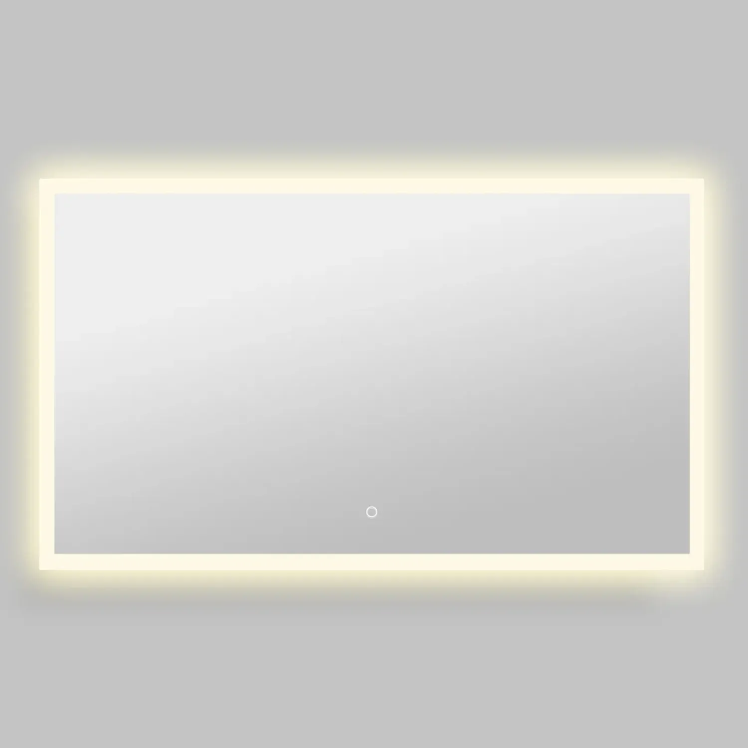 Flot spejl i 70×120 cm med frosted kant og LED lys i bagkanten. Spejlet er IP 44 godkendt, hvilket betyder at det er godkendt til brug i vådrum.