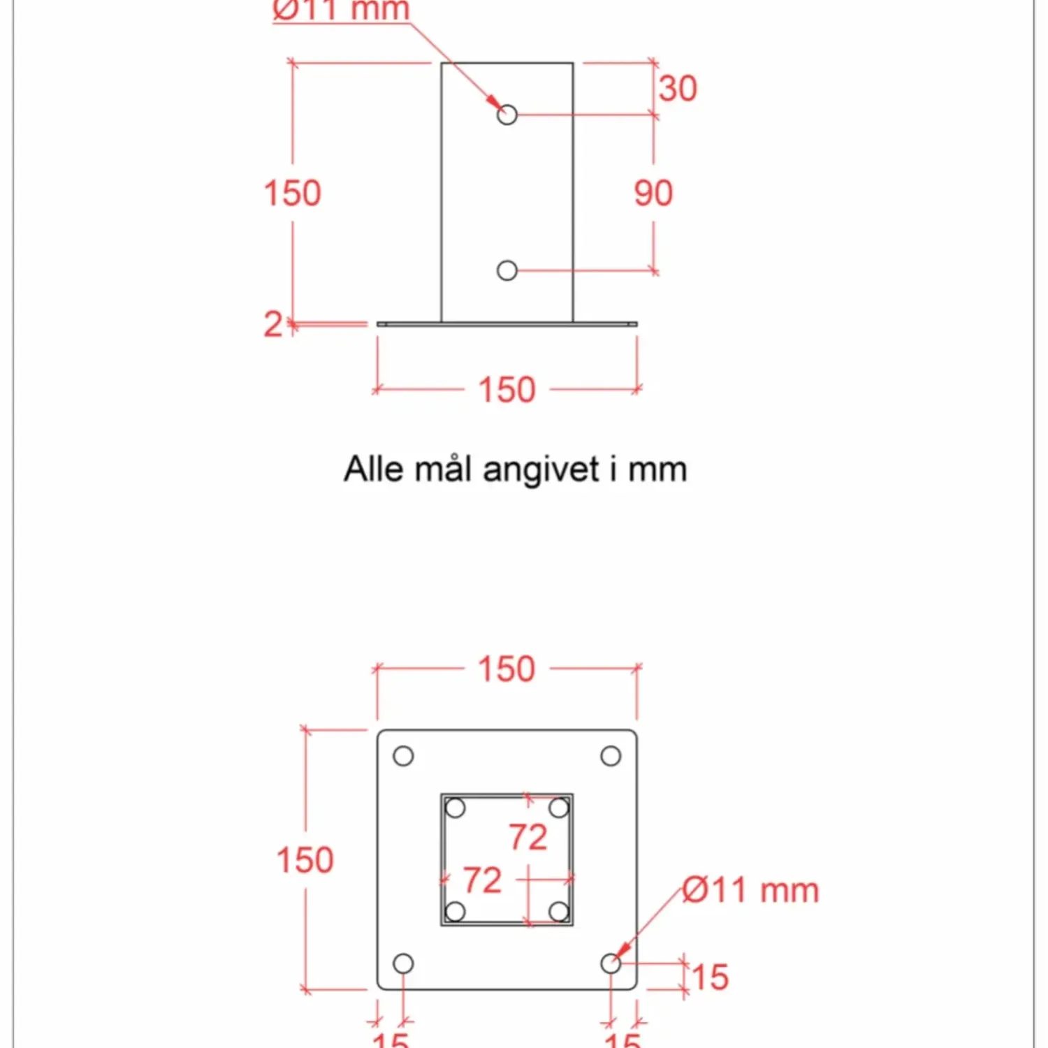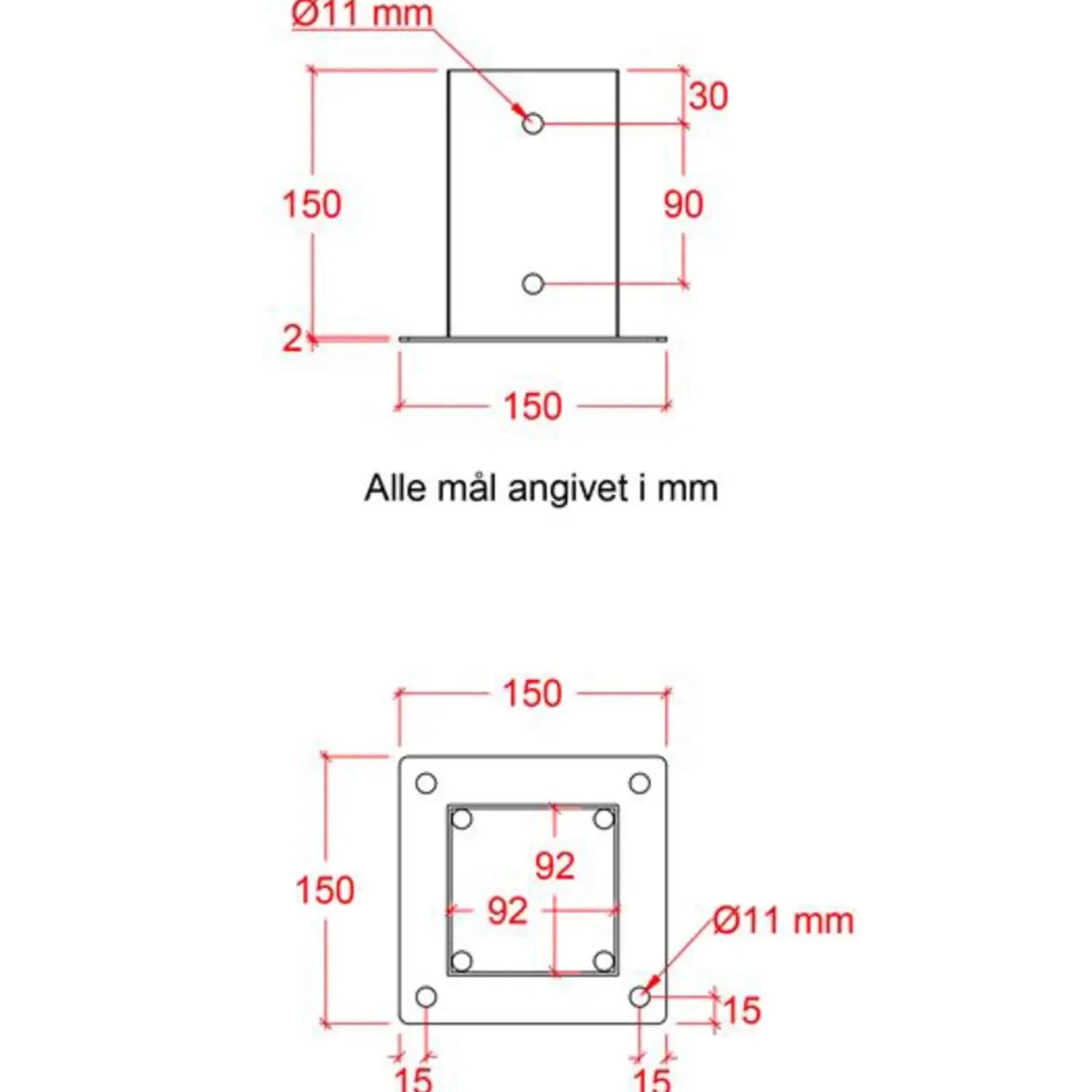 - Fod: 15 x 15 cm