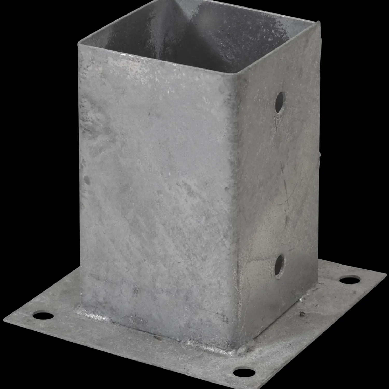 Stolpefod til fundament i varmgalvanisert stål, der anvendes til træstolper.