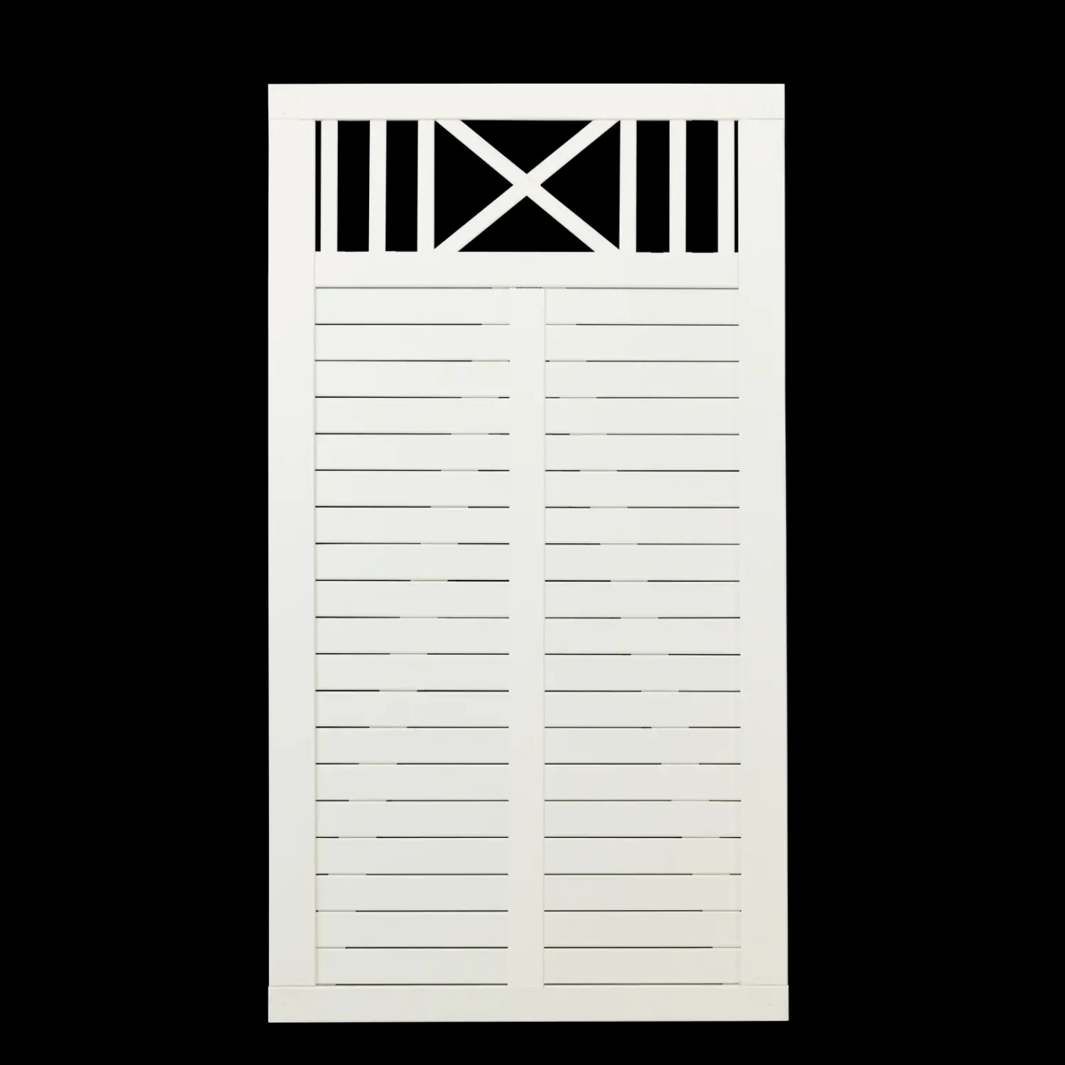 Nostalgi låge fra Plus har et nostalgisk udtryk, der bringer romantik og klasse i haven. Kombination af klassiske espalier i toppen og lodrette og krydsede stave, skaber hygge i haven og bringer barndomsminderne frem.