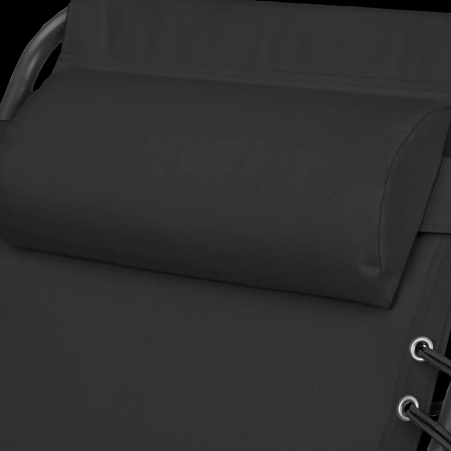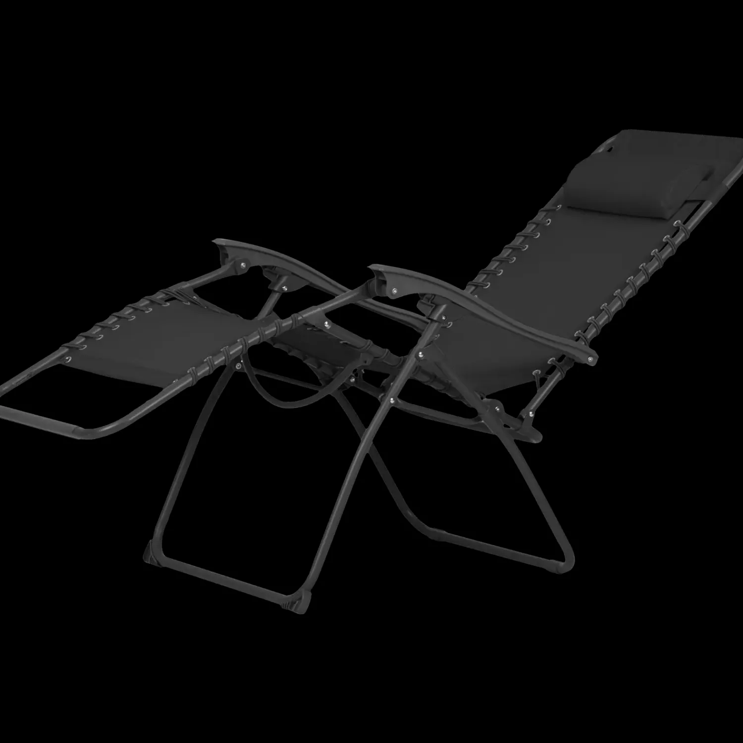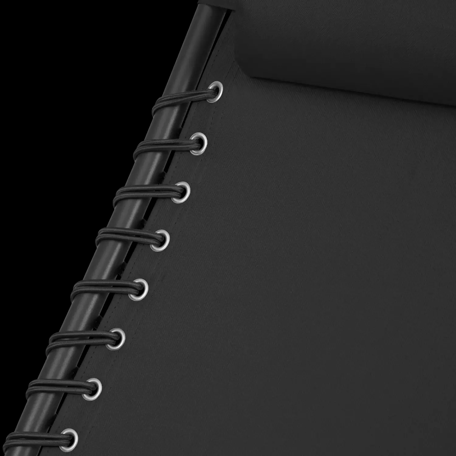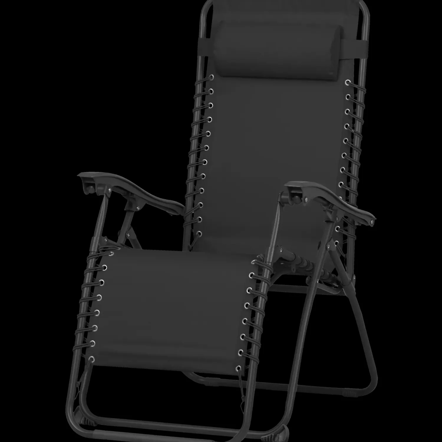 Komfortabel havestol med indstillelig ryg i sort stof med sortlakeret metalstel.