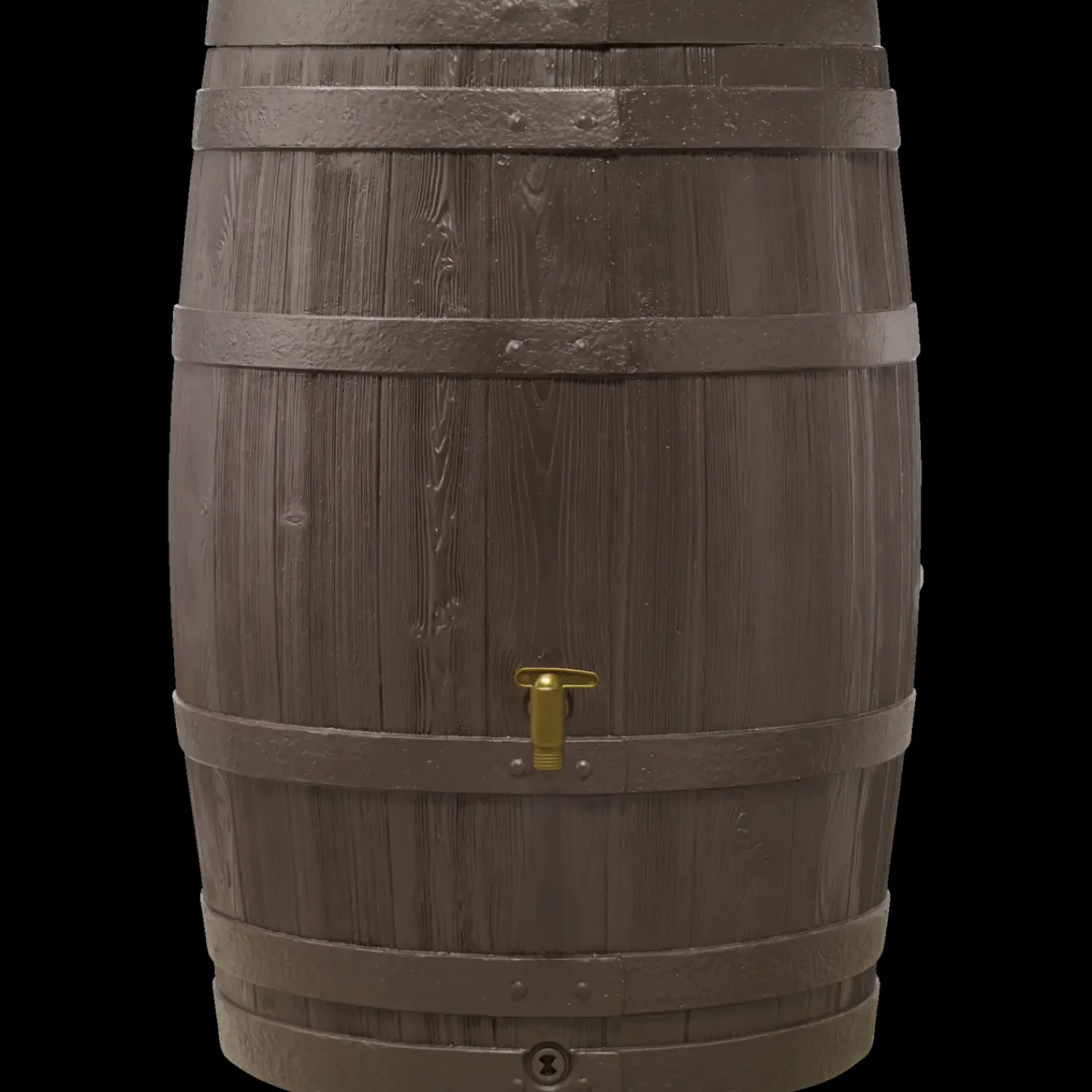 Råt, rustikt design. Låg med børnesikring. Simpel tilslutning, og inkl. hane. Regnvandstønden er inklusive hane som er en 250 liters model med vintønde look, som har en mørk træ tekstur. Beholderen samler regnvand til brug af havevanding, hvilket er godt for både miljøet og din vandregning.