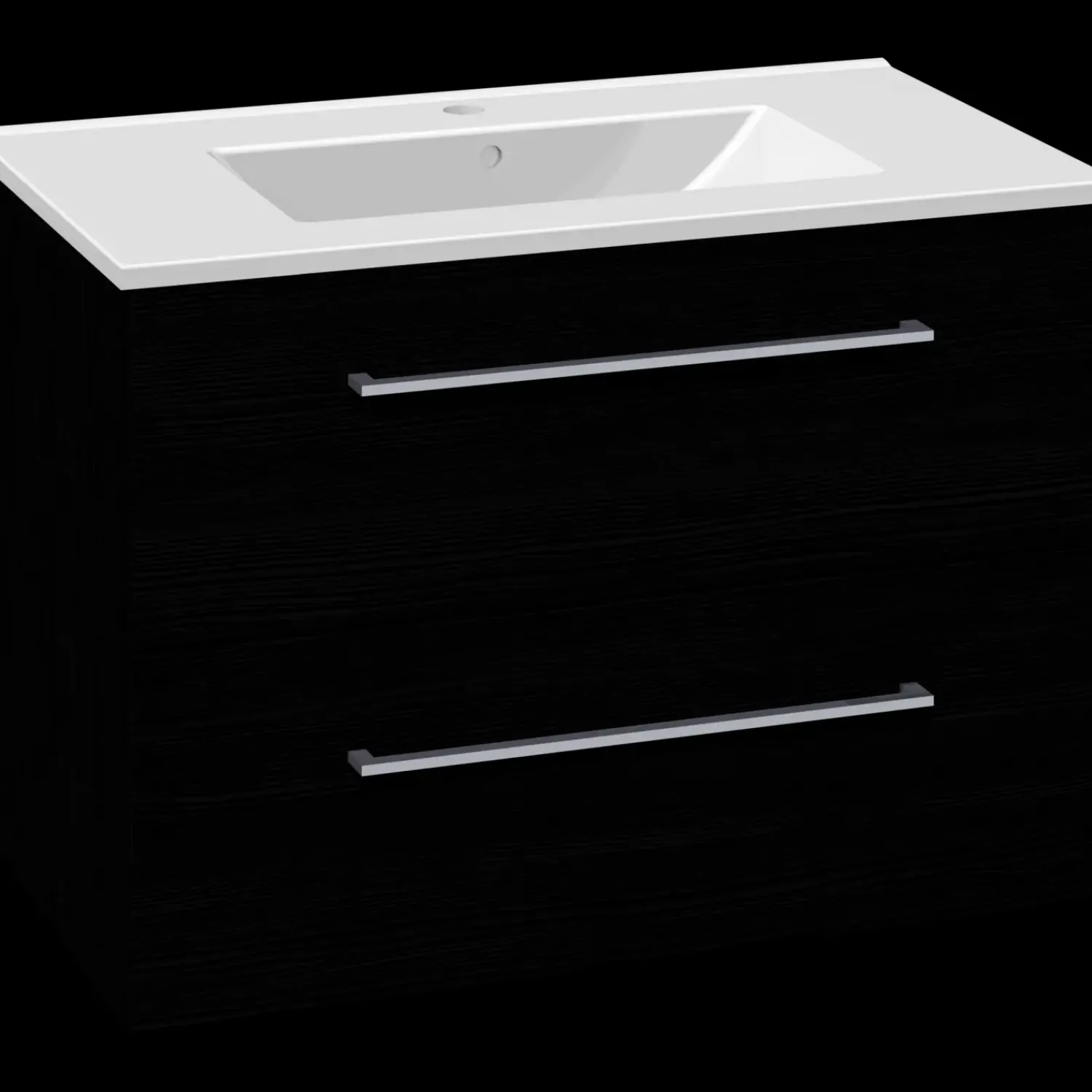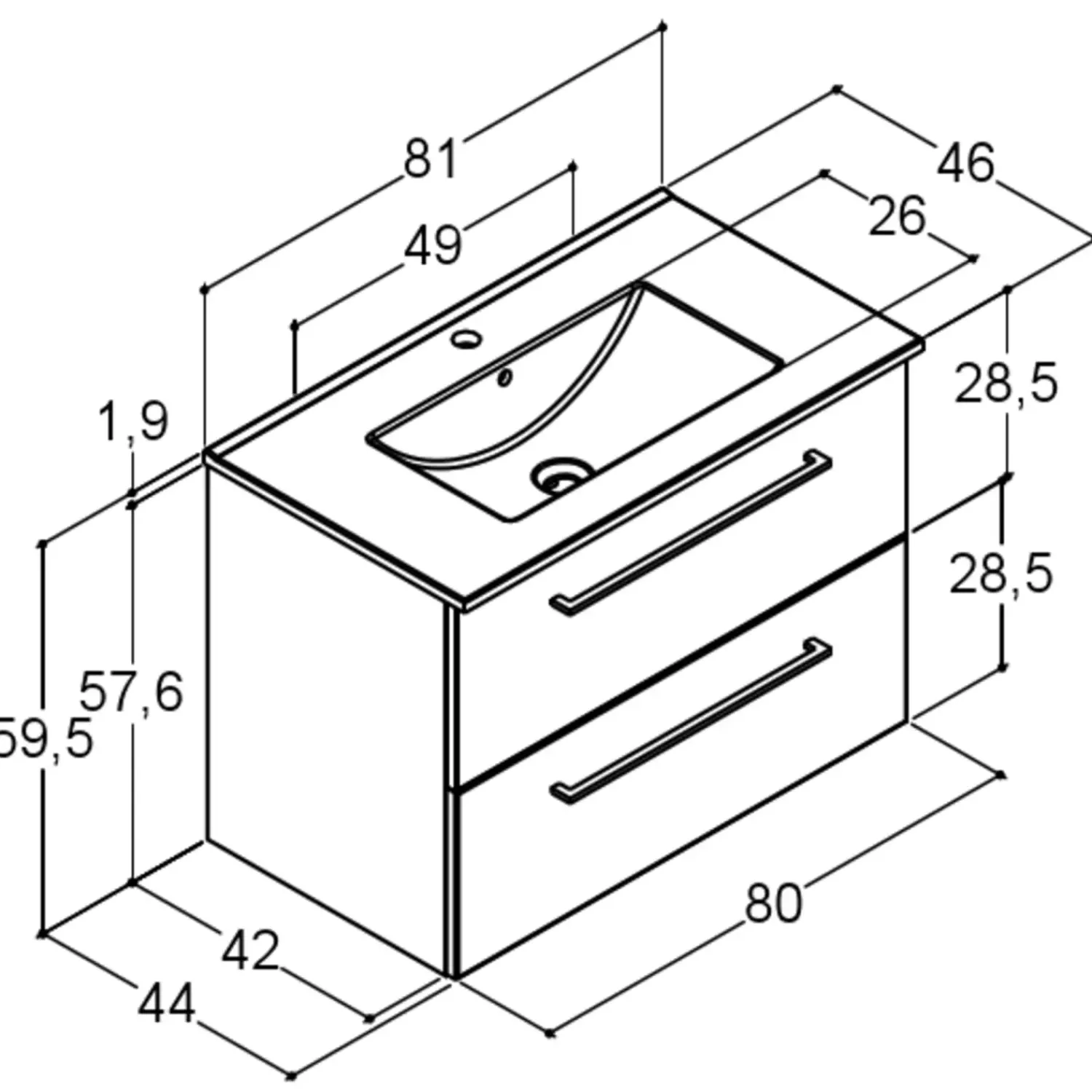 Vaskeskab 80 cm, hvid mat med 2 skuffer og Amber porcelænsvask, 81 cm.