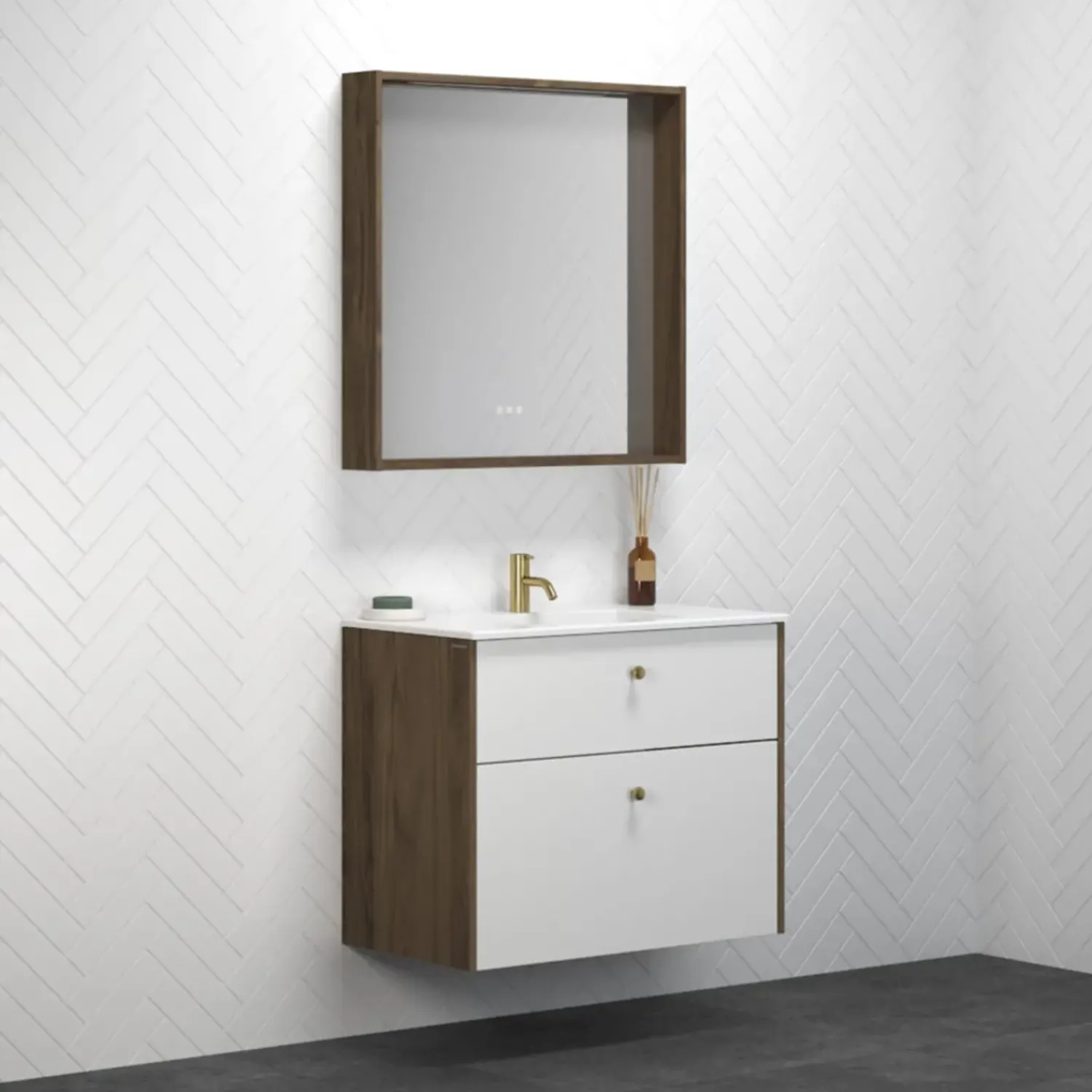 Skabet med indbygget vask der har store flader og en karakteristisk visuel elegance. Den bløde og lydløse lukning af låger og skuffer giver en oplevelse af høj kvalitet. Vasken i porcelæn med en blank hvid overflade, har en klassisk from i et helt enkelt og skarpt udryk samt en god bassinstørrelse. Du får her et højt vaskeskab med masser af plads til opbevaring i de 2 store skuffer.