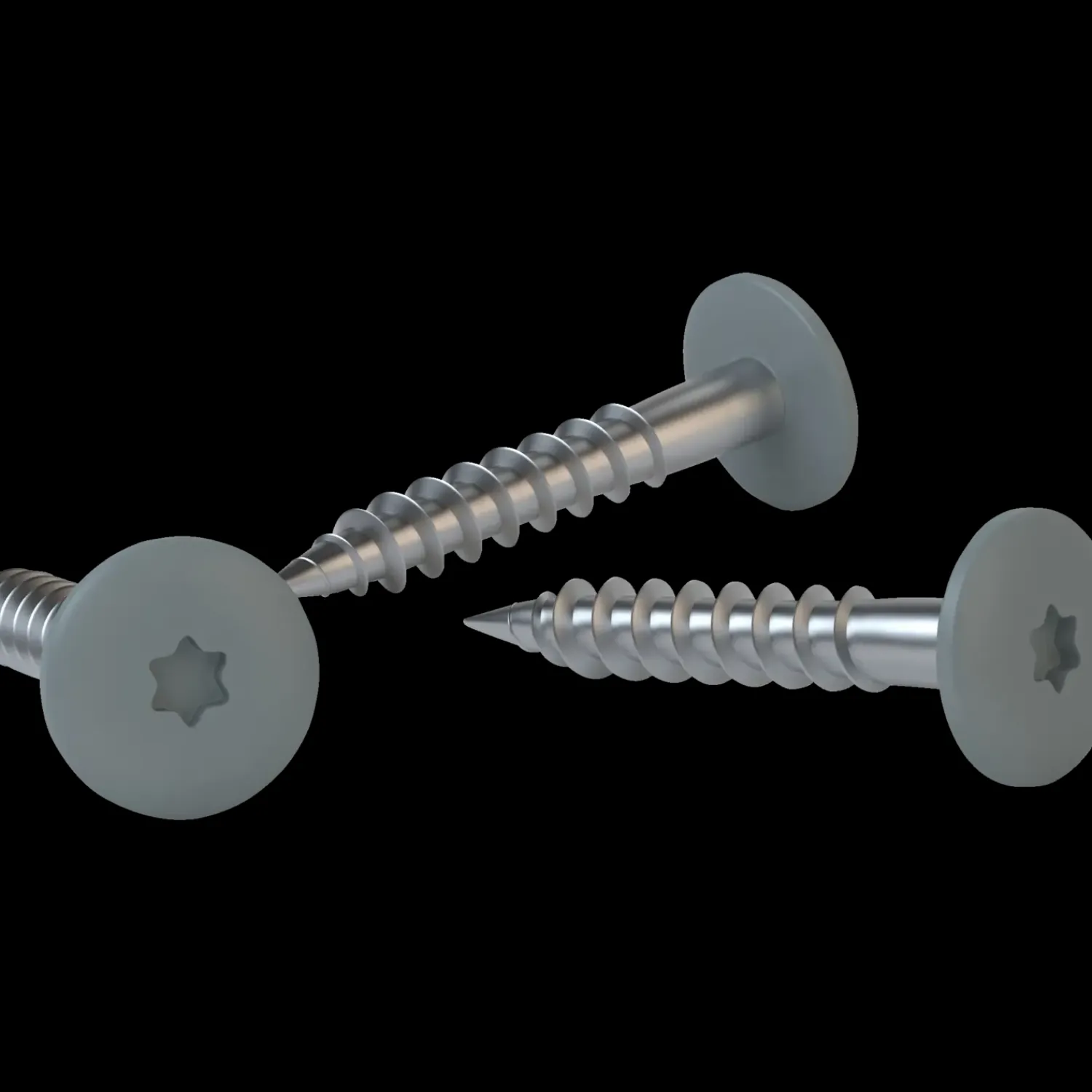 Facadeskrue af høj kvalitet. Skruen er er fremstillet i rustfrit stål, kvalitet A2.Til montering på træunderstøtnin…