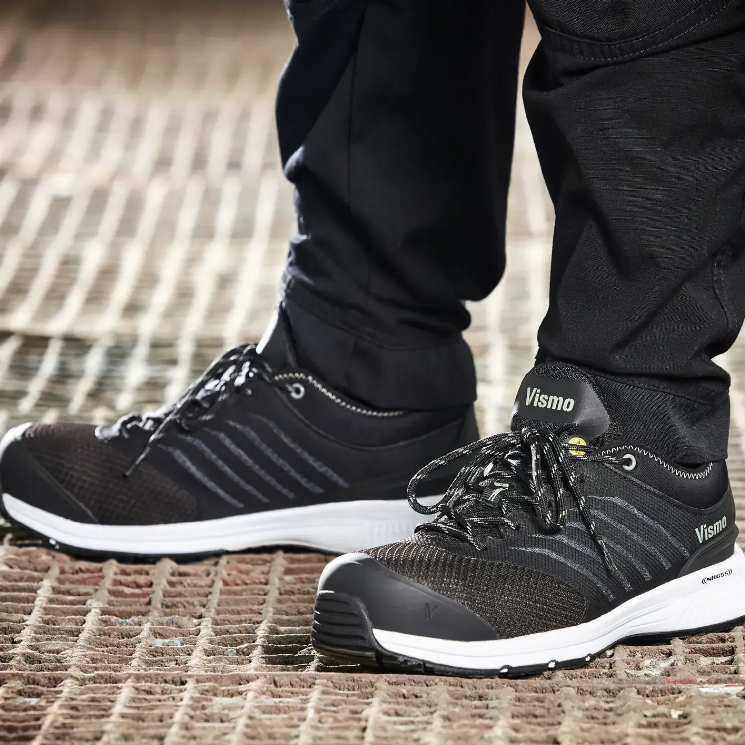 Med denne model fra Vismo, får du en let og åndbar sikkerhedssko. Den har en slidstærk og skridhæmmende gummi ydersål og NRG55™ mellemsål, som giver optimal stødabsorbering. Skoen er let og fleksibel og hele overdelen er lavet i tekstil, så du undgår svedige fødder.