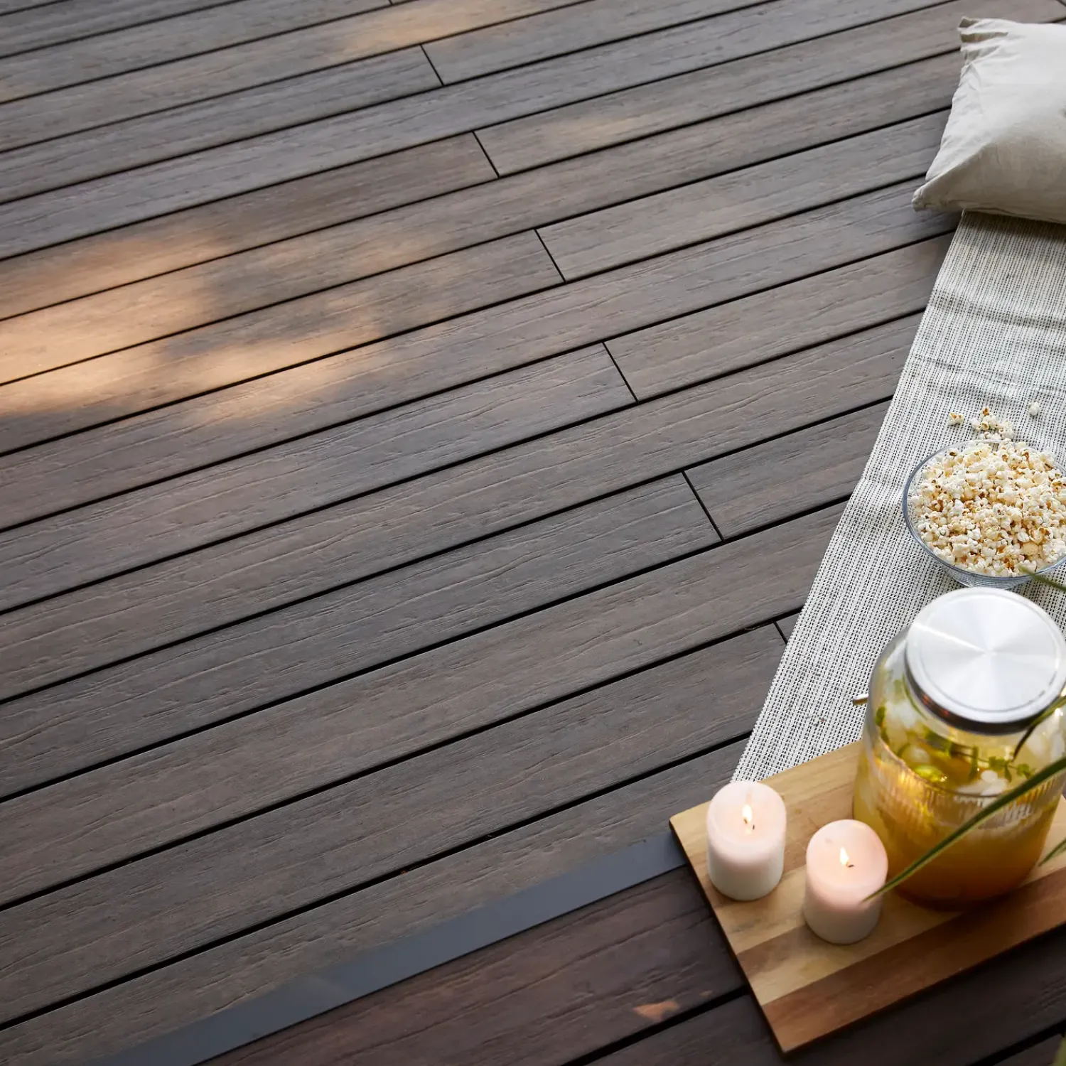 Brættets naturlige skandinaviske design, kombineret med en matbrun tonalitet, tilfører en stilfuld elegance til ethvert uderum. Denne kompositløsning sikrer desuden en splintfri overflade takket være den nøje sammensætning af træ, polymer og additiver, hvilket gør den både sikker og komfortabel, især for familier med børn.
