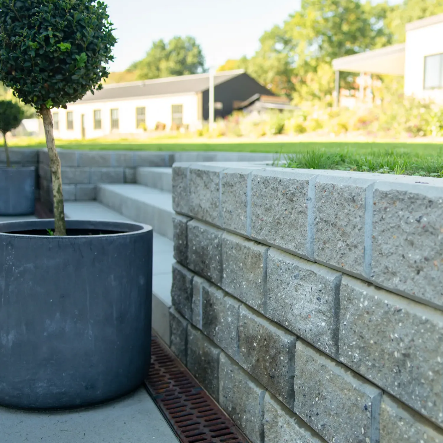 Easyblokke kan anvendes til både støttemure og fritstående mure, da begge sider kan anvendes som facade.