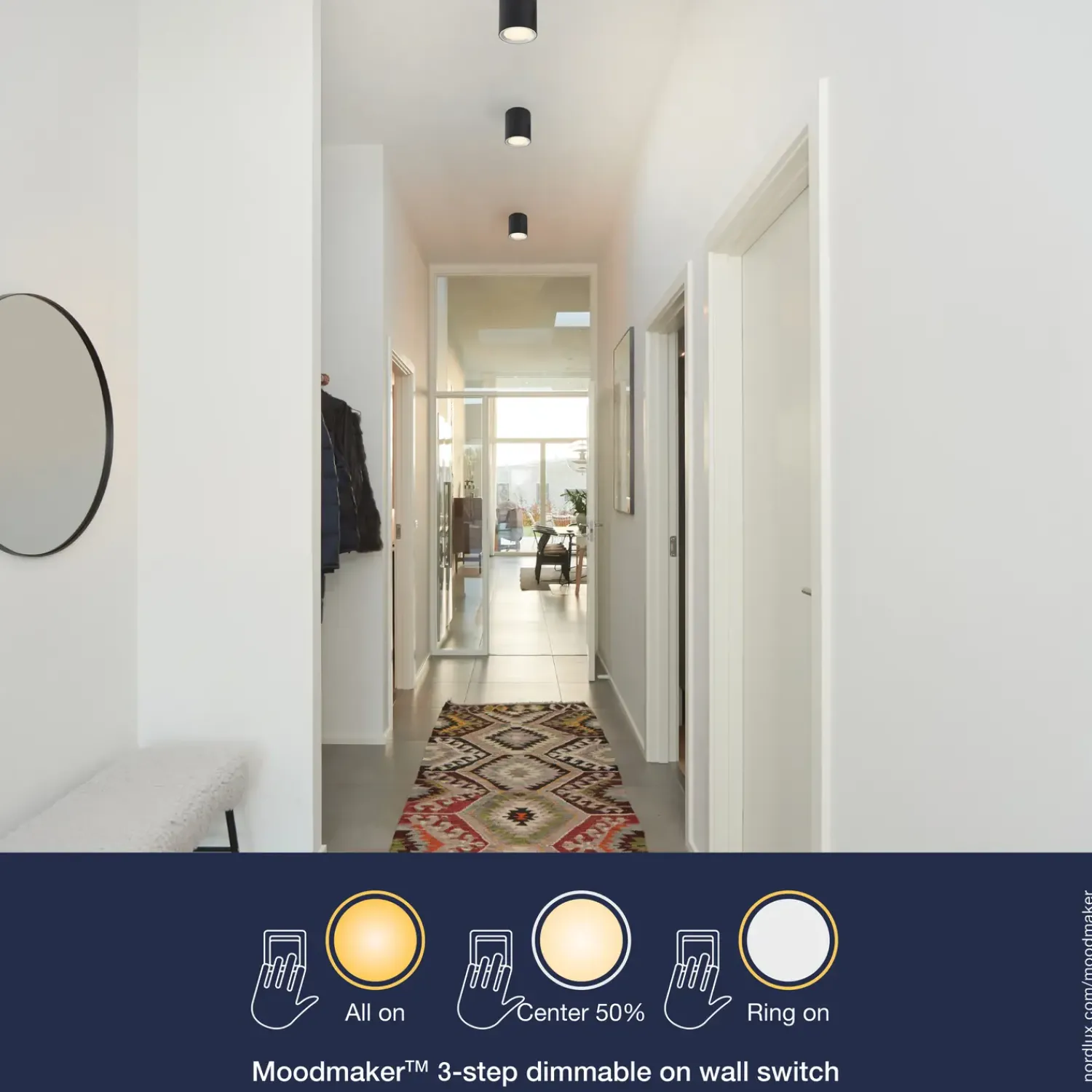 Fallon LED indbygningsspot fra Nordlux. Lampen har integreret lysdioder og Moodmaker med 4 funktioner, så du nemt kan skifte lysstyrken med almindelig stikkontakt. Spottet har et klassisk og moderne design med runde forme.