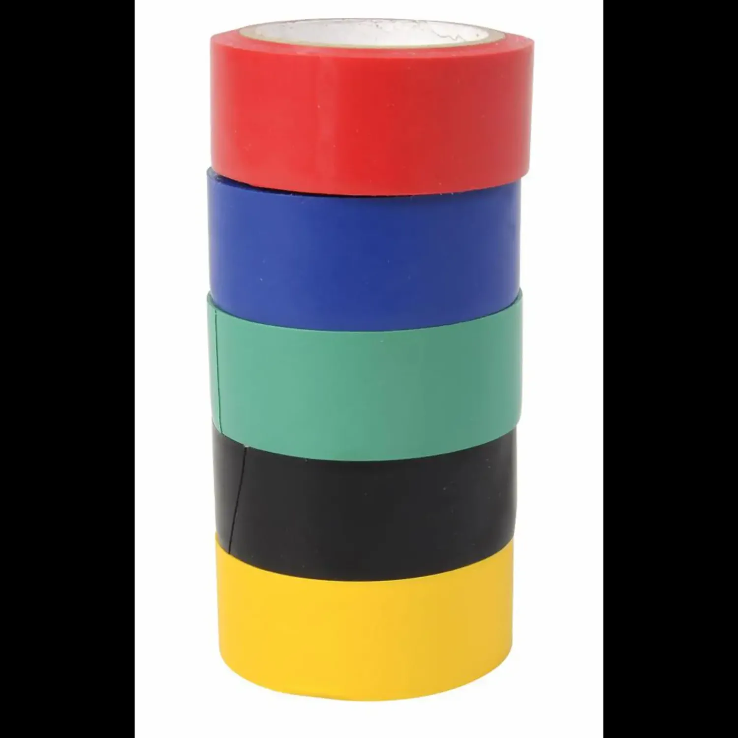 Isoleringsbånd findes i assorterede farver. Måler 19 mm x 3,6 m pr. rulle.