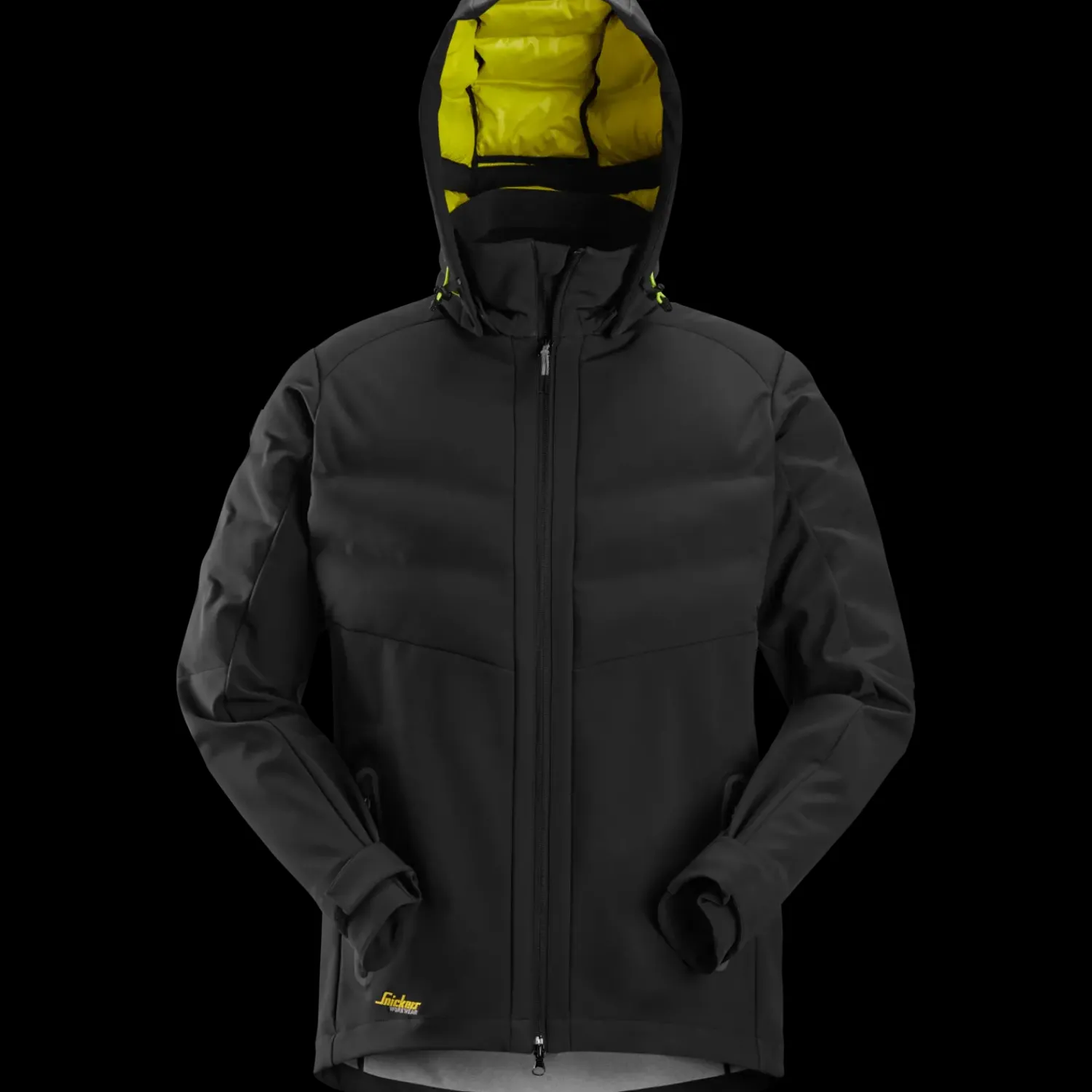 Teknisk avanceret arbejdsjakke i et 3-lags vindtæt materiale med jersey indvendigt og vandafvisende overflade uden fluorkarbon. Jakken har også svejsede kanaler med isolerende polyesterfyld på skuldre, øvre del af kroppen samt hætte, hvilket gør den ekstra varm. Den alsidige jakke har derudover to lommer til at varme hænderne i, aftagelig hætte samt mulighed for justering ved ærmeenderne og elastik forneden, der giver en optimal pasform.