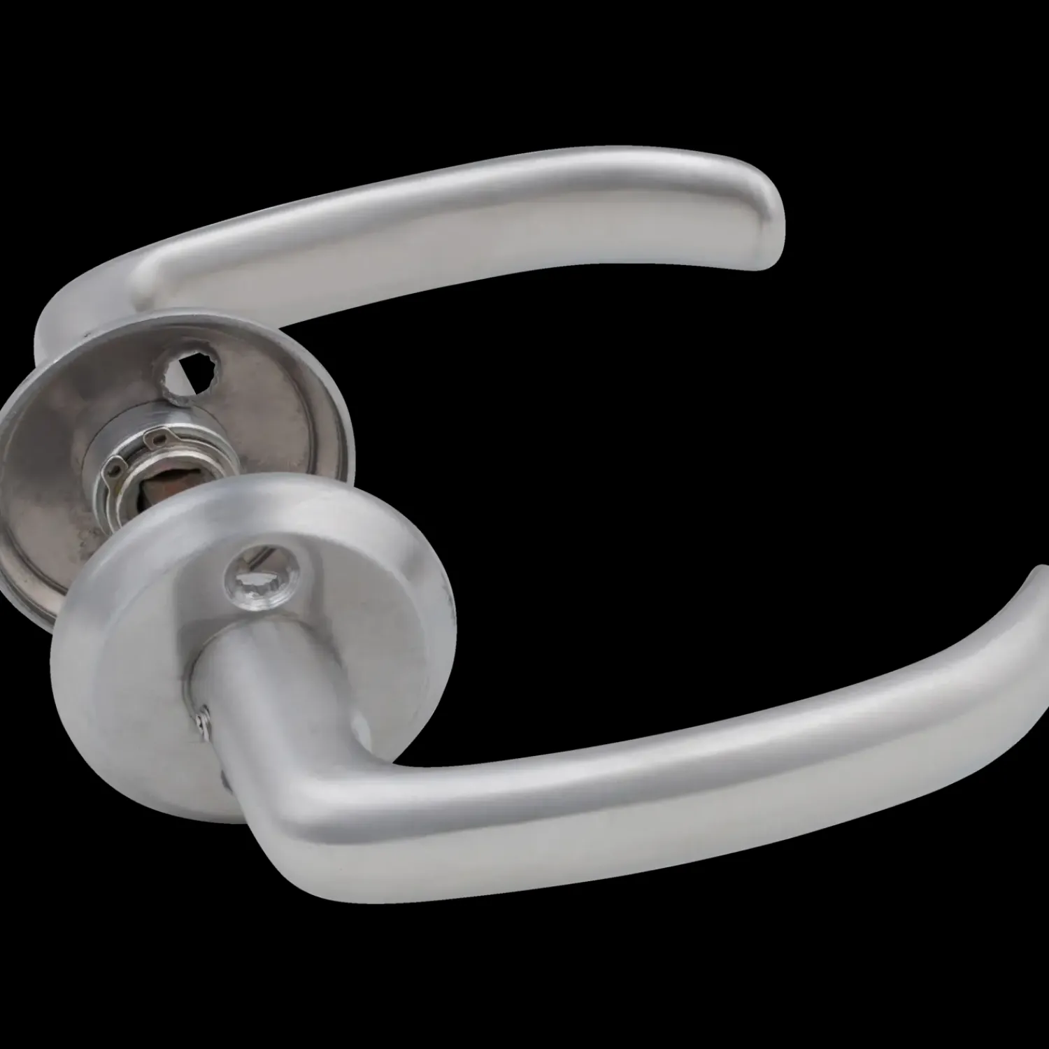 19 mm dørgreb massiv med 6 mm oppresset roset Ø52 mm. I 3046 børstet rustfri stål.Inkl. skruerPasser til dørtykkels…