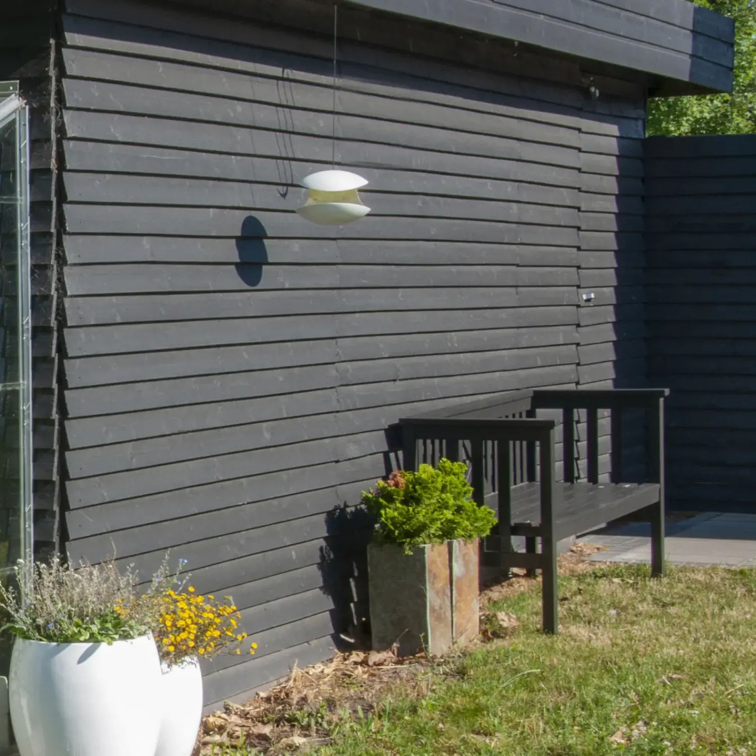 Sort grundmalet klinkbeklædning med fer og not til f.eks facadebeklædning..