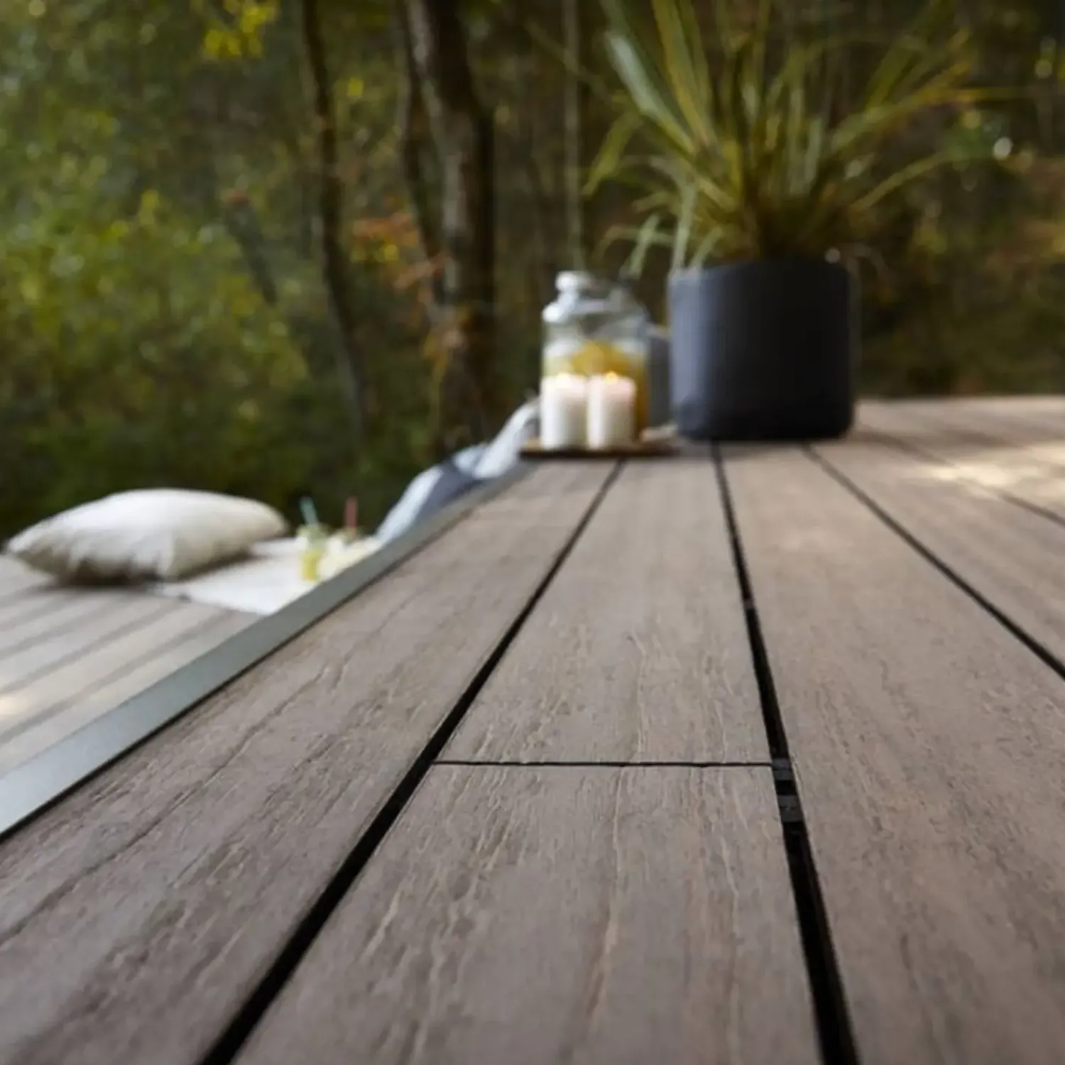 Kombinationen af træ, polymer og additiver sikrer et langtidsholdbart produkt, der leverer et splintfrit underlag, som hele familien kan nyde. Med det smarte clips-system er installationen både nem og hurtig, da der ikke kræves synlige skruer. Dette resulterer i et rent og elegant udseende og sparer tid ved monteringen.