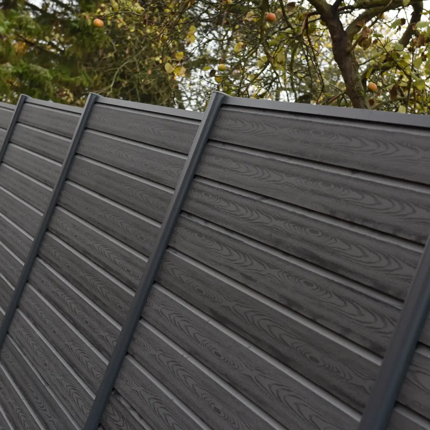 - 12 stk antracit/sort komposit hegnsprofiler K2 (klinkprofil), der måler (L x B x T) 1800 x 150 x 25 mm