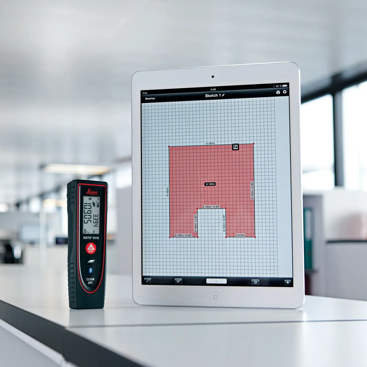Uanset om du har brug for et hurtigt overslag over materialeforbrug eller arbejder med et husrenoveringsprojekt, giver Disto D110 med gratis tegne-app dig uendelige muligheder.
