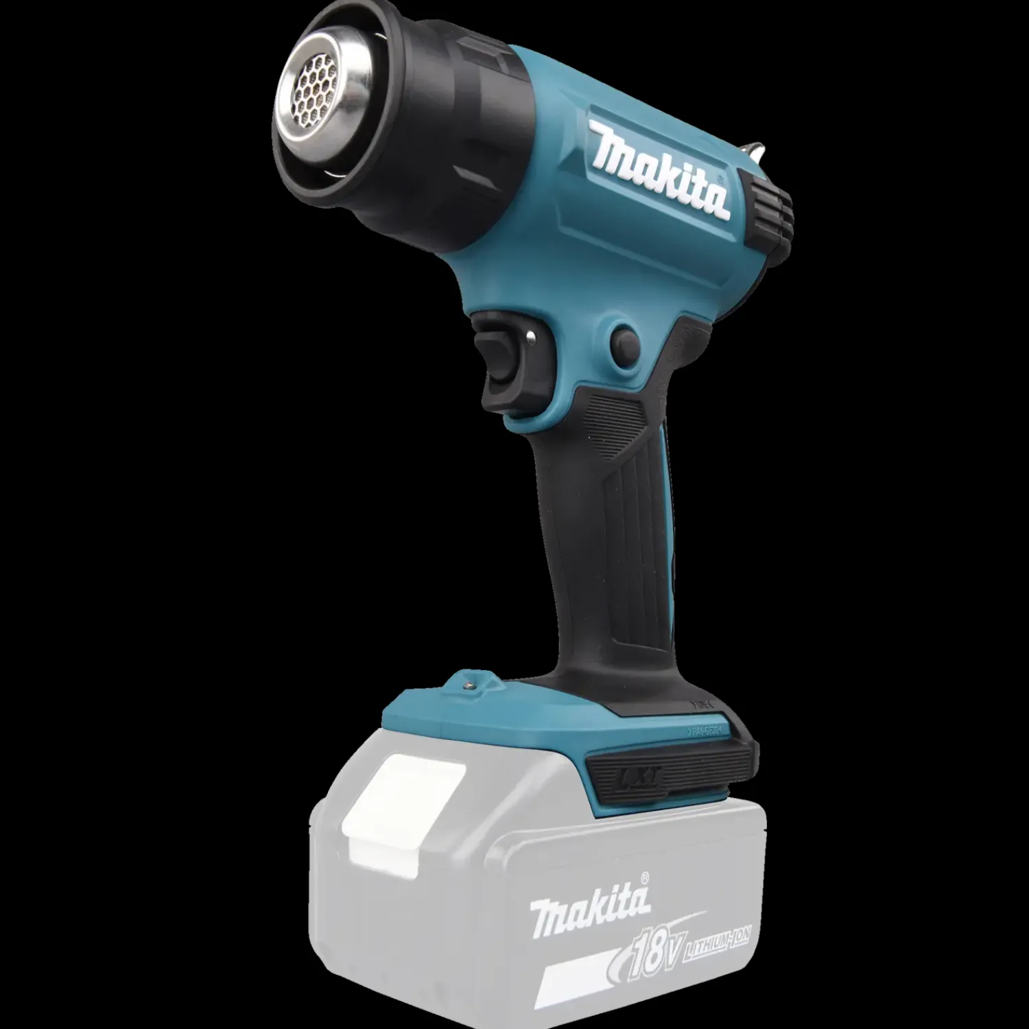 DHG180 varmluftpistol har en max. temperatur på 550° og en luftstrømshastighed 200 l / min. Maskinen er velegnet til krympning, fjernelse af maling og optøning af frosne rør. Leveres uden kuffert, batterier og lader, men passer batteri med andre 18V LXT maskiner fra Makita.
