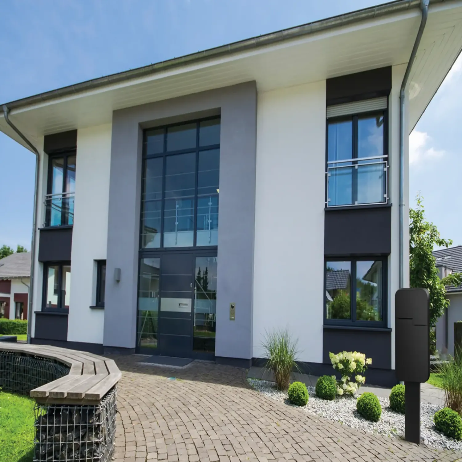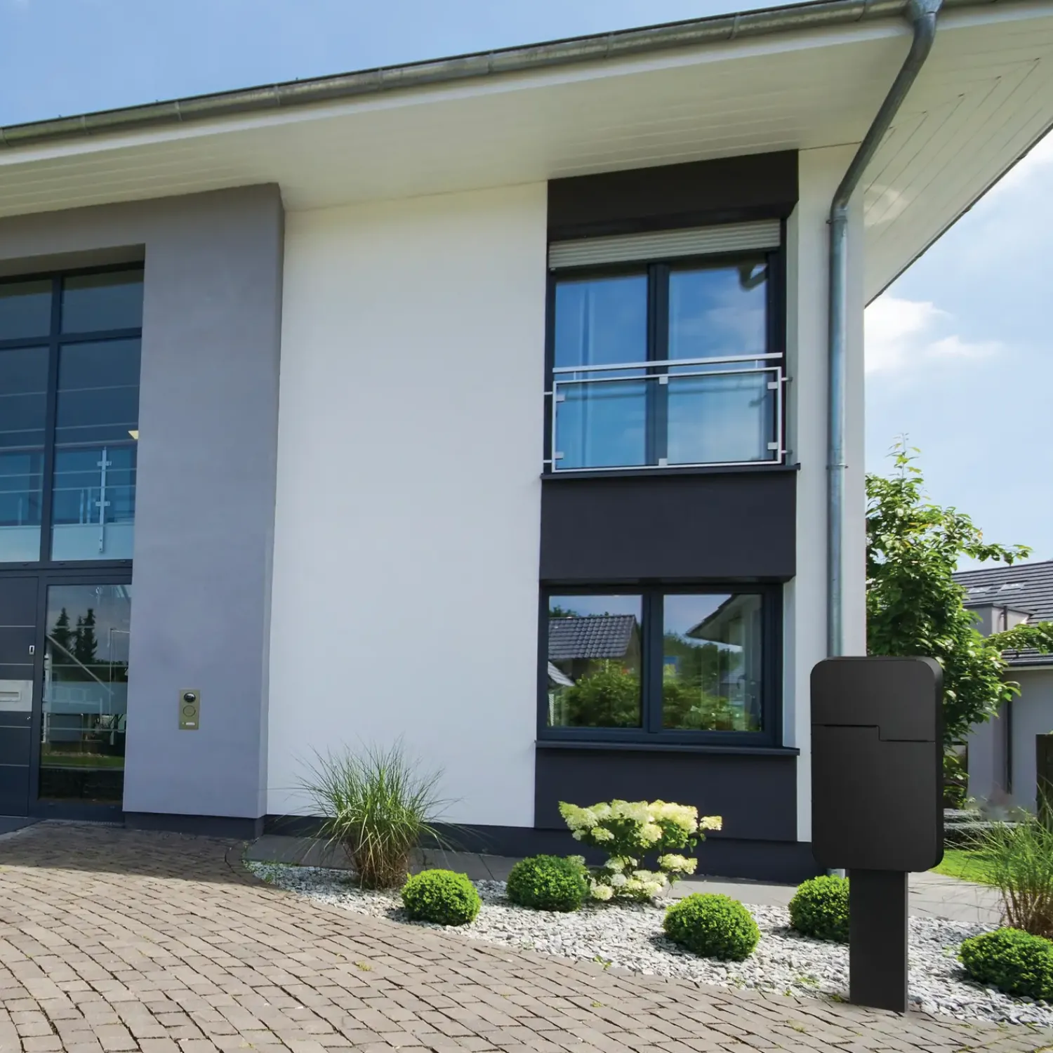 Smart designet postkasse med skjult indkast og lås. Med Ruko 6-stift sikkerhedslås, der kan omstilles til hoveddøren. Postkassen har støjdæmpet lukning af klappen