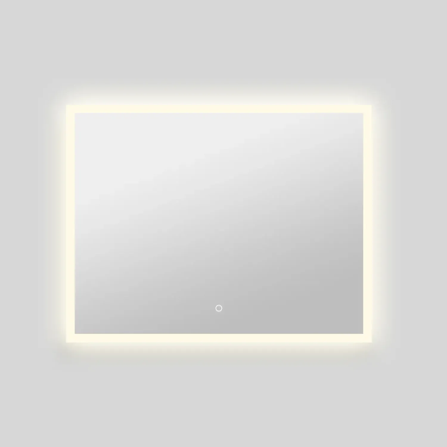 Flot spejl i 70×90 cm med frosted kant og LED lys i bagkanten. Spejlet er IP 44 godkendt, hvilket betyder at det er godkendt til brug i vådrum.