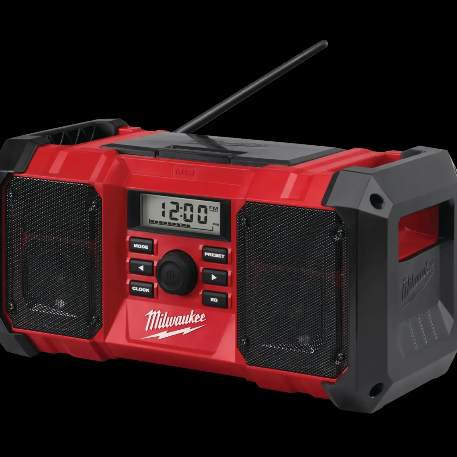 Leveres med AUX-kabel, 2 x AAA batterier. Uden M18 batterier